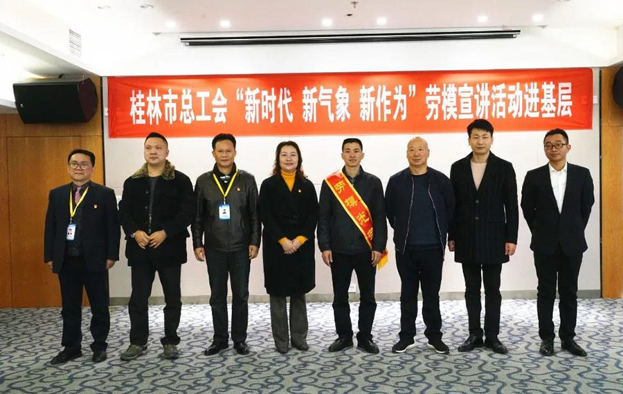 恰逢全國上下學(xué)習(xí)貫徹習(xí)近平總書記同中華全國總工會新一屆領(lǐng)導(dǎo)班子成員重要講話精神、隆重慶祝改革開放40周年和自治區(qū)成立60周年之際,11月22日上午,新城投資集團工會委員會在新城商務(wù)酒店辦公樓十樓會議廳舉辦了“新時代,新氣象,新作為”勞模宣講活動。市總工會黨組成員、財貿(mào)工會主席劉寶成等領(lǐng)導(dǎo)以及市總工會代表、新區(qū)管委黨群團代表、市文投集團代表、新城投資集團代表及中建八局二公司廣西公司桂林基地項目代表參加了宣講會,會議由新城投資集團黨支部委員、工會主席譚力源主持。