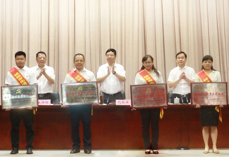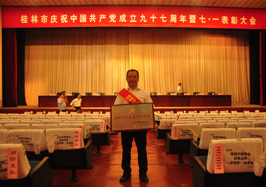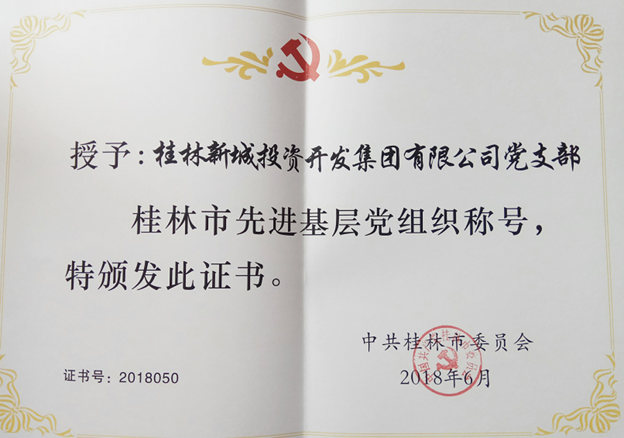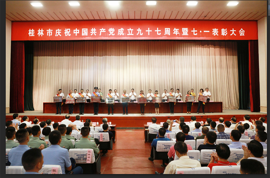 2018年6月29日上午,在桂林市直機(jī)關(guān)小禮堂舉行的桂林市慶祝中國共產(chǎn)黨成立九十七周年暨七·一表彰大會(huì)上,表揚(yáng)了全市先進(jìn)基層黨組織、優(yōu)秀共產(chǎn)黨員、優(yōu)秀黨務(wù)工作者,新城投資集團(tuán)黨支部榮獲“桂林市先進(jìn)基層黨組織”稱號,黨支部書記周道林代表新城投資集團(tuán)黨支部參加了此次表彰大會(huì)。