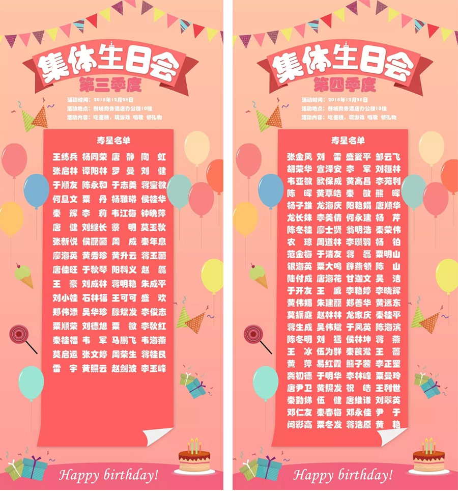 第三季度、第四季度生日會(huì)