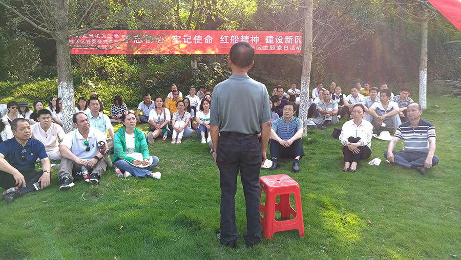 臨桂區(qū)直屬機關工委書記蒙建梅給大家進行了總結發(fā)言,她指出,此次黨日主題活動形式多樣、豐富多彩,通過游船、徒步和老黨員講訴入黨初心的故事三個步驟,讓參加活動的全體黨員感性的認識到臨桂新區(qū)湖塘水系十年建設成果,同時通過蔣老的黨課,讓大家對共產黨員的初心與使命有了更深的、更透徹的理解。希望大家牢記并積極履行自己做為共產黨員的使命!最后,蒙書記希望新區(qū)黨員干部繼續(xù)努力,砥礪前行,在新區(qū)建設中充分發(fā)揮黨員先鋒模范帶頭作用,為臨桂新區(qū)建設貢獻更大的成就。