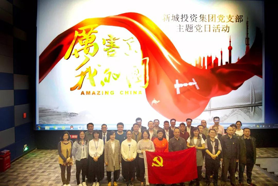 2018年4月9日下午,新城投資集團(tuán)黨支部組織全體黨員、入黨積極分子、申請(qǐng)入黨培訓(xùn)班學(xué)員及群團(tuán)工作人員集中觀看了大型紀(jì)錄片《厲害了,我的國(guó)》。觀影前,大家舉黨旗合影留念,齊聲吶喊“厲害了,我的國(guó)”,表達(dá)內(nèi)心的激動(dòng)與喜悅,記錄最美瞬間。