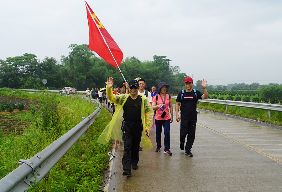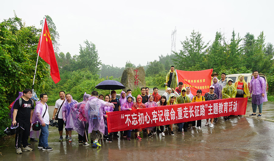 在中國共產(chǎn)黨建黨98周年之際,為進一步提升支部黨員的黨性修養(yǎng),緬懷革命先輩,牢記革命歷史,繼承和弘揚偉大的長征精神,6月27日,新城投資集團黨支部全體黨員組織了“不忘初心,牢記使命,重走長征路”主題黨日活動,來到全州縣紹水鎮(zhèn)沿著紅軍當(dāng)年的足跡,追憶紅軍的光輝歲月,學(xué)習(xí)紅軍精神,開展重走長征路活動。臨桂新區(qū)工委委員、管委會副主任文杰,市紀委駐臨桂新區(qū)紀檢組副組長唐良平,新城投資集團黨支部書記、總經(jīng)理周道林以普通黨員身份參加活動。