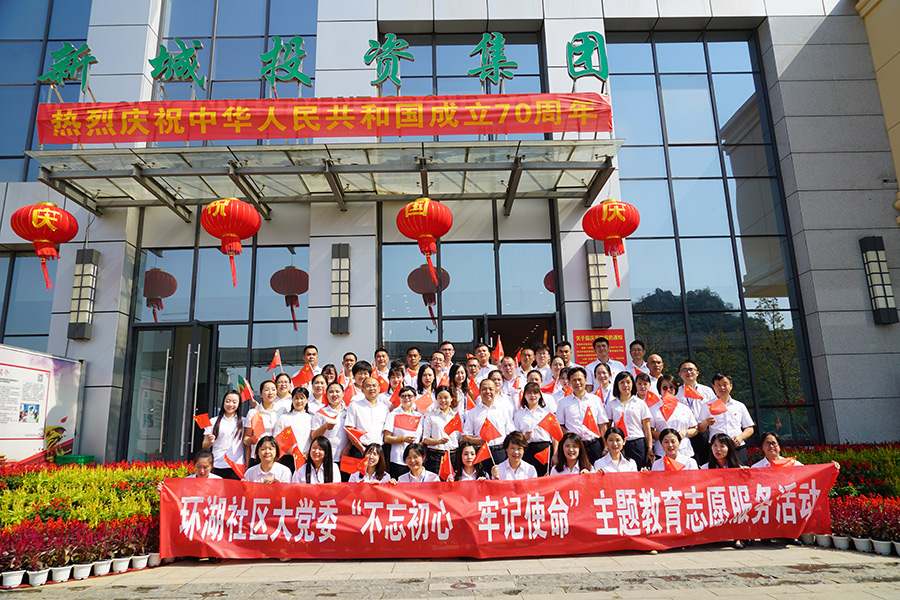 新城投資集團(tuán)黨總支、環(huán)湖社區(qū)黨支部慶祝新中國成立70周年合影
