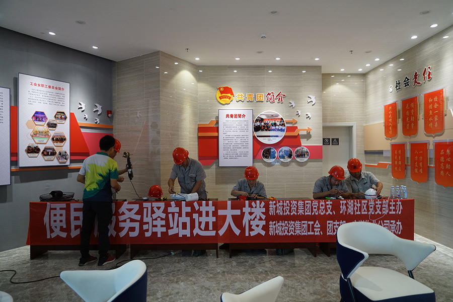 在中華人民共和國成立70周年即將來臨之際,9月30日上午,新城投資集團(tuán)黨總支聯(lián)合環(huán)湖社區(qū)黨支部、宏謀物業(yè)公司在新城投資集團(tuán)辦公大樓一樓舉辦“‘不忘初心、牢記使命’便民服務(wù)驛站進(jìn)大樓志愿服務(wù)活動”,為在本大樓辦公的總工會、水利局、司法局員工提供小家電維修服務(wù),黨員以實(shí)際行動踐行為身邊群眾辦實(shí)事、辦好事?;顒釉谛鲁峭顿Y集團(tuán)黨總支、環(huán)湖社區(qū)黨支部全體黨員合唱的《我和我的祖國》歌聲中啟動,大家用嘹亮的歌聲、真摯的情感抒發(fā)出對偉大祖國的最美好的祝愿!集團(tuán)黨總支籌備工作領(lǐng)導(dǎo)小組組長、董事長周道林,黨總支籌備工作領(lǐng)導(dǎo)小組副組長、副總經(jīng)理鄧仁友,環(huán)湖社區(qū)第一書記蔡燕,環(huán)湖社區(qū)黨支部書記、居委會主任李伊倩出席了活動。