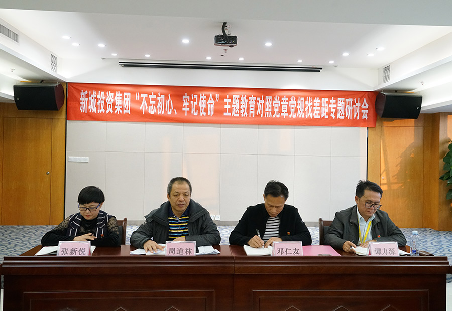 11月11日,新城投資集團黨支部召開“不忘初心、牢記使命”主題教育暨對照黨章黨規(guī)找差距專題研討會。集團黨支部書記、董事長周道林主持會議。
