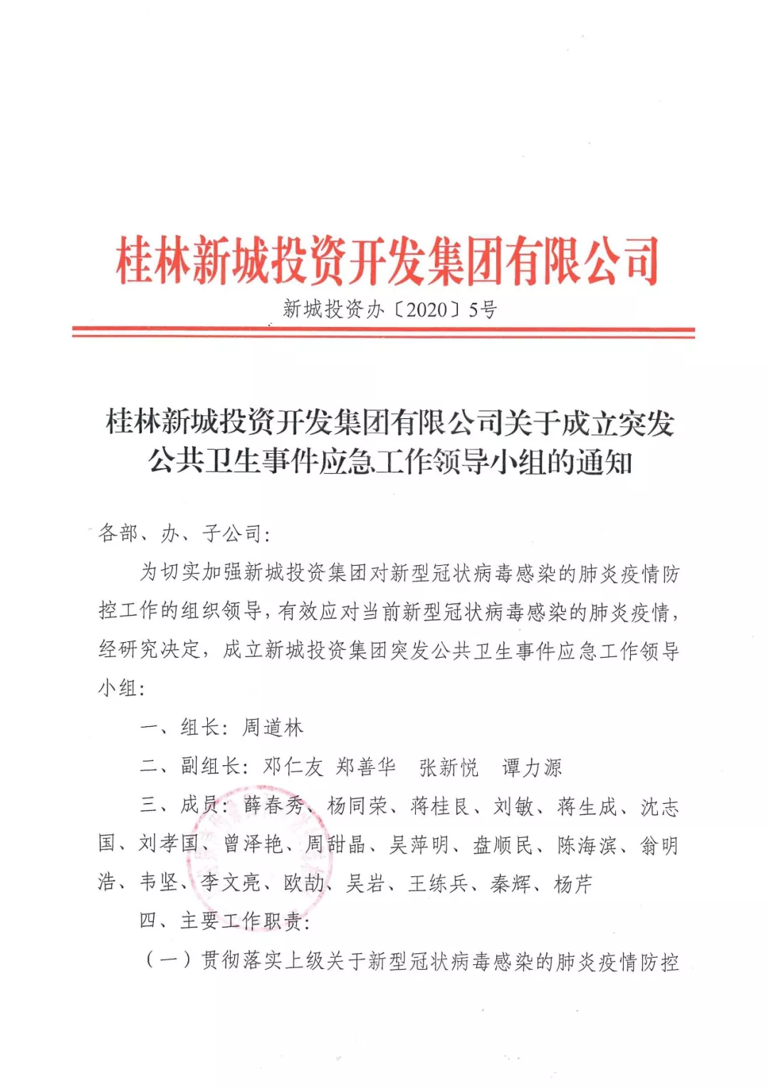 在新春佳節(jié)、闔家團(tuán)聚之際,新型冠狀病毒感染肺炎疫情防控形勢十分嚴(yán)峻。黨中央對疫情防控工作高度重視,習(xí)近平總書記作出重要指示。自治區(qū)黨委、政府和市委、市政府正在密集部署疫情防控工作,為響應(yīng)切實(shí)打贏疫情防控狙擊戰(zhàn)的戰(zhàn)斗號召,新城投資集團(tuán)黨支部書記、董事長、總經(jīng)理周道林要求集團(tuán)公司迅速進(jìn)入“戰(zhàn)時狀態(tài)”,堅決貫徹落實(shí)習(xí)近平總書記重要指示和講話精神,把抗擊疫情作為檢驗(yàn)“不忘初心、牢記使命”主題教育成效的又一“試金石”,切實(shí)履行主體責(zé)任和工作職責(zé),及時掌握疫情,及時采取行動,做到守土有責(zé)、守土盡責(zé),堅決遏制疫情蔓延勢頭。