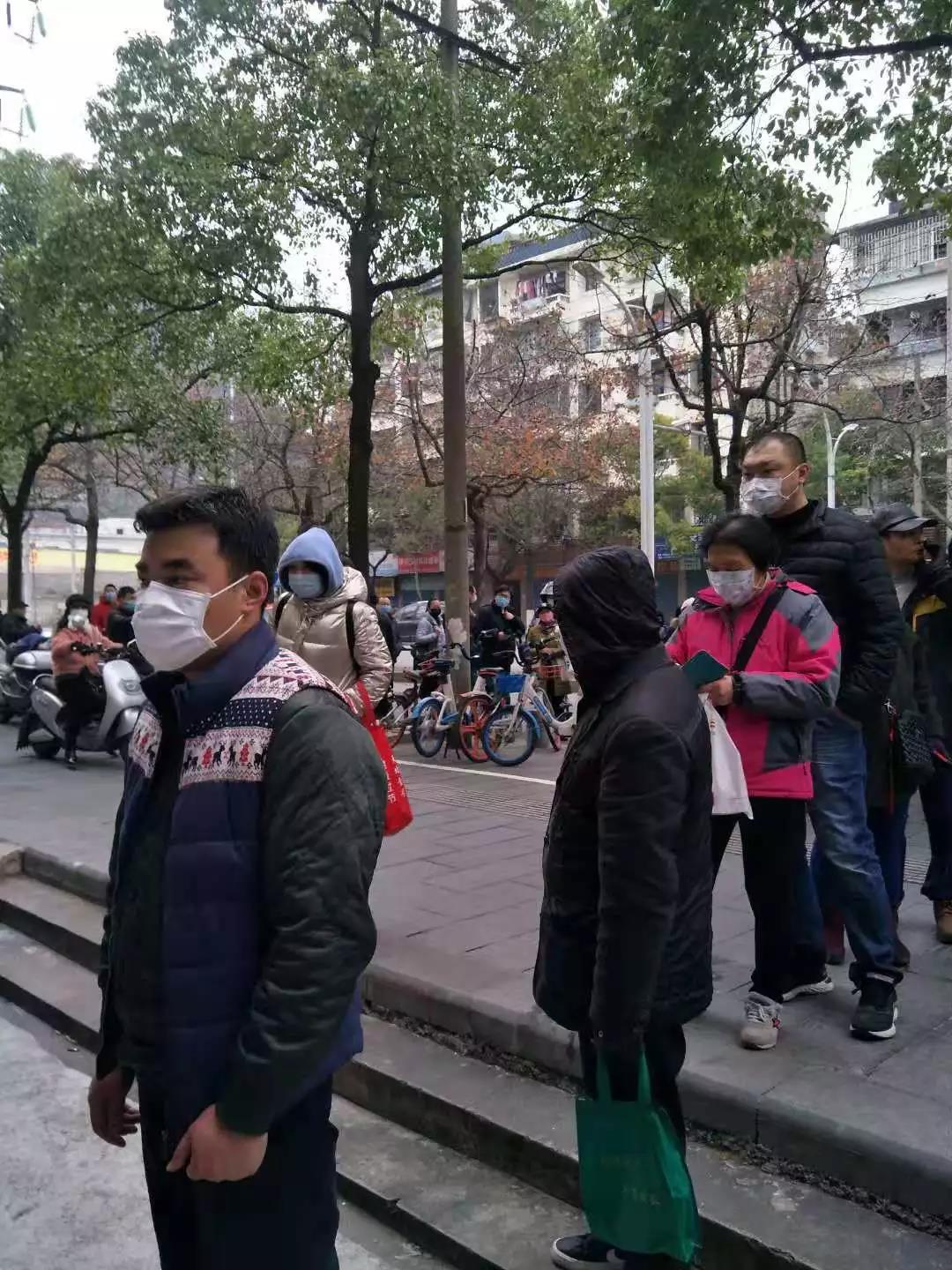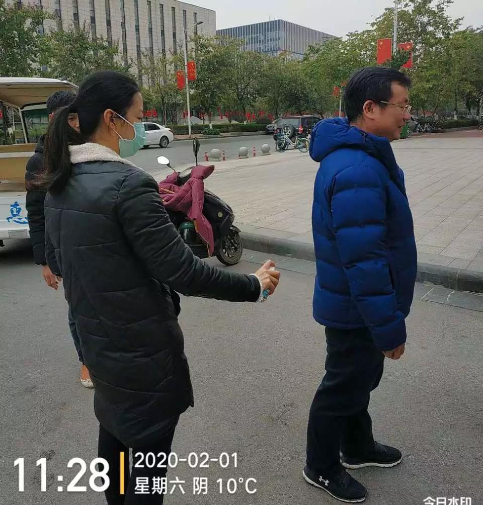 ▲冷冷的天氣,唐忠祥同志在各藥店和醫(yī)療器械機(jī)構(gòu)門口排隊(duì)采購(gòu)物資。