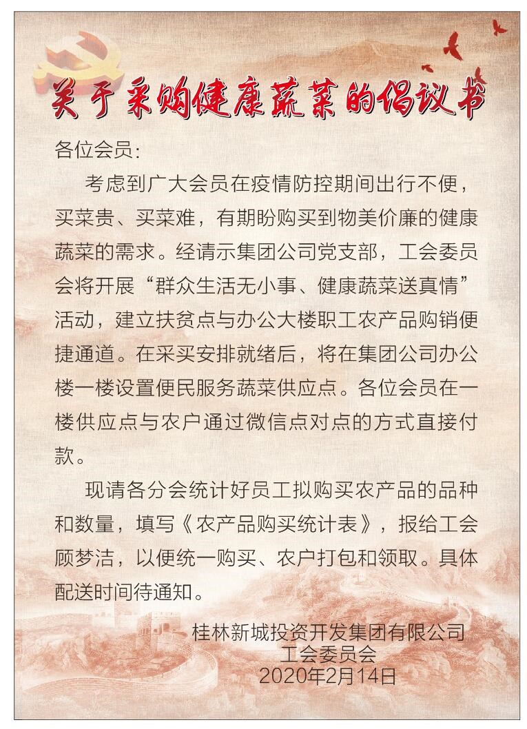 “你搶著菜了嗎?”已經(jīng)成為新冠肺炎疫情下,除“你搶著口罩了嗎?”外另一句流行的打招呼方式。而居家隔離、不敢出門、菜市場貨物短缺出現(xiàn)的買菜貴、買菜難等等問題隨之而來。集團(tuán)公司工會(huì)想職工之所想,始終關(guān)心職工冷暖,把“新鮮蔬菜配送到辦公樓”的想法模式孕育而生。在集團(tuán)黨支部的指導(dǎo)下,工會(huì)委員會(huì)主動(dòng)聯(lián)系周邊鄉(xiāng)鎮(zhèn)的貧困農(nóng)戶,組織開展“群眾生活無小事、健康蔬菜送真情”點(diǎn)對點(diǎn)活動(dòng),即開通扶貧點(diǎn)農(nóng)戶的農(nóng)產(chǎn)品與辦公大樓職工的購銷便捷通道,這種做法不僅充分發(fā)揮了工會(huì)聯(lián)系群眾的橋梁紐帶作用,把密切聯(lián)系群眾的優(yōu)勢轉(zhuǎn)化為疫情防控的優(yōu)勢,而且還搭建起了一座防疫與扶貧的愛心橋,將“群眾利益無小事,一枝一葉總關(guān)情”的工會(huì)服務(wù)理念落在了實(shí)處。