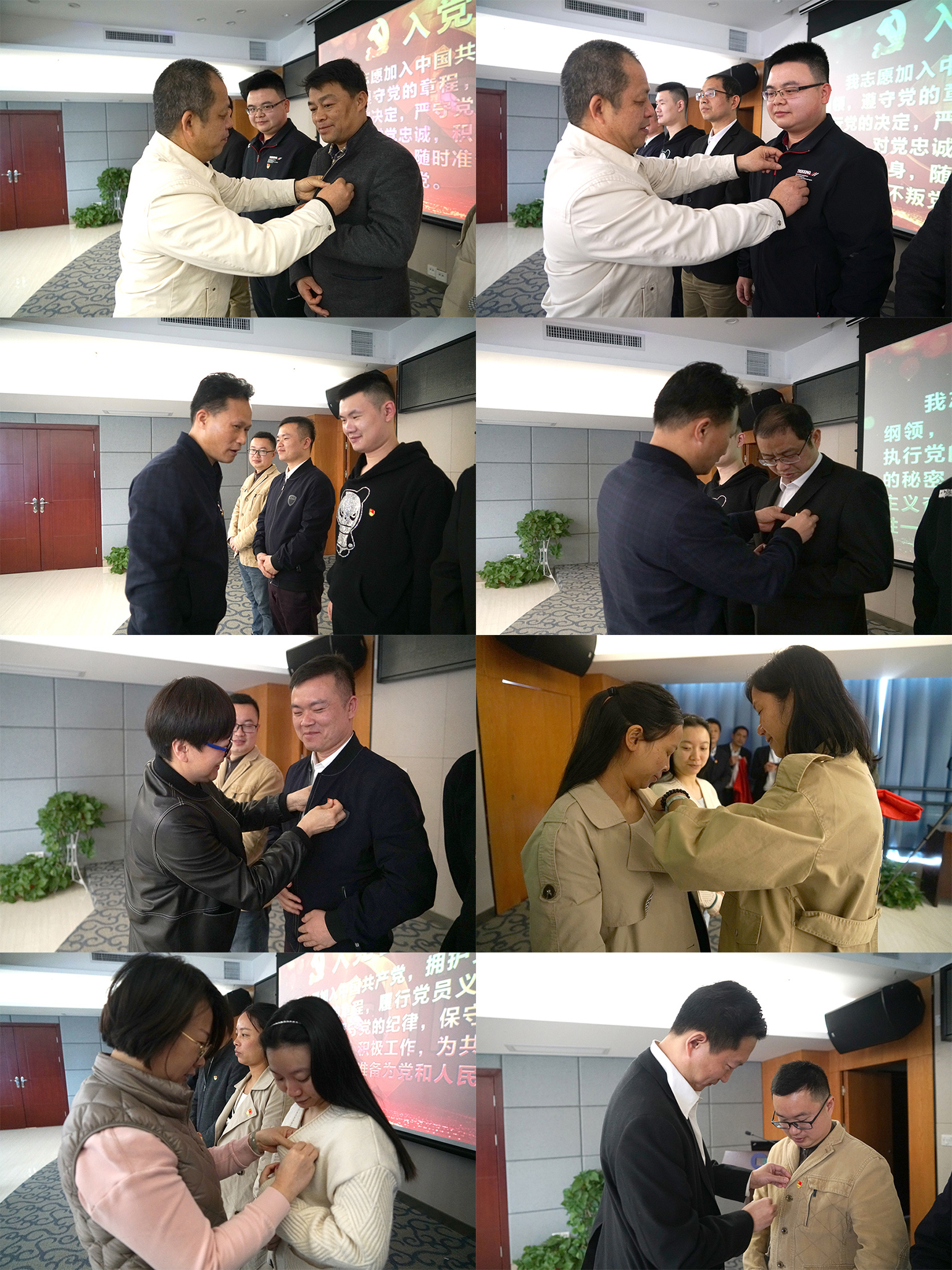黨總支委員親手為10位預備黨員一一佩戴黨徽。