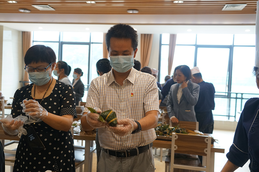 在集團公司會場,工會會員宏謀酒店廚師鄧軍紅現(xiàn)場教學(xué),教大家包正宗的宏謀粽子。現(xiàn)場員工現(xiàn)學(xué)現(xiàn)包,各顯神通,歡快的展示自己的作品。