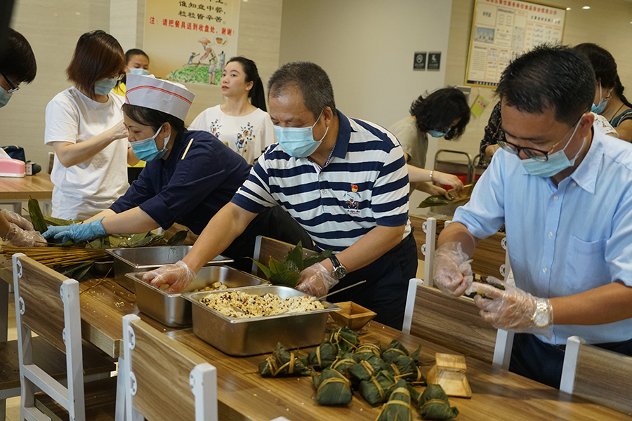 物業(yè)分會場,邀請了環(huán)湖社區(qū)黨支部共同參與活動,物業(yè)分會員工和環(huán)湖社區(qū)黨員歡聚一堂,開展了小組包粽子比賽和端午節(jié)趣味知識問答,在體驗包粽子的同時,還學(xué)到了有趣的傳統(tǒng)文化小知識。