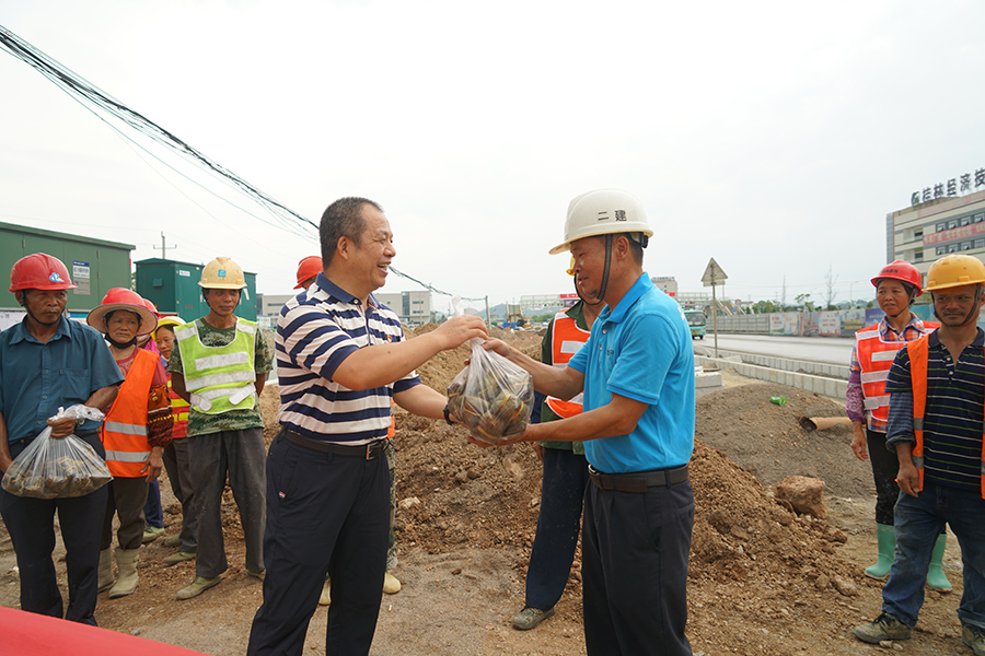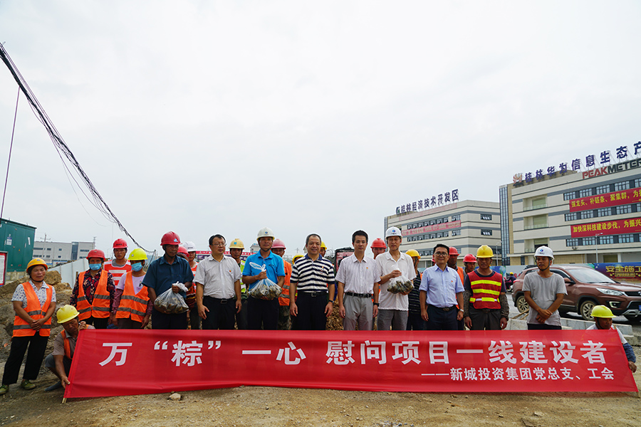 上午,新城投資集團黨總支、工會還開展了“萬'粽'一心,共創(chuàng)文明城”端午節(jié)慰問項目一線建設(shè)者活動,臨桂新區(qū)工委委員、管委會副主任文杰,集團黨總支書記、董事長周道林率隊帶著新鮮出爐的粽子,來到西城大道南延長線兩個標(biāo)段施工現(xiàn)場,為奮斗在市政府限期完工的西城大道南延長線,慰問一線的190名建設(shè)者們。