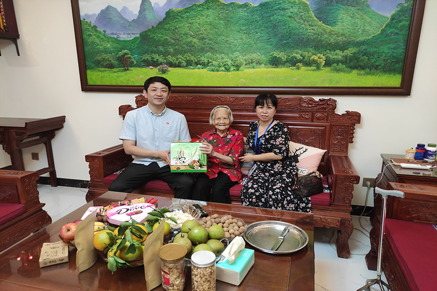 下午,根據(jù)新區(qū)工委《2020年臨桂新區(qū)創(chuàng)建全國文明城市志愿服務(wù)工作方案》,集團黨總支、工會聯(lián)合環(huán)湖社區(qū)黨支部共同開展“端午佳節(jié) 濃情粽意”慰問社區(qū)老人志愿服務(wù)活動,周道林陪同臨桂區(qū)委組織部副部長,臨桂鎮(zhèn)黨委副書記,社會事務(wù)管理中心常務(wù)副主任蔡云亞,桂林市臨桂區(qū)社會事務(wù)管理中心副主任盧元妹等一起走進國奧小區(qū),給老人們送去熱氣騰騰的愛心粽子。