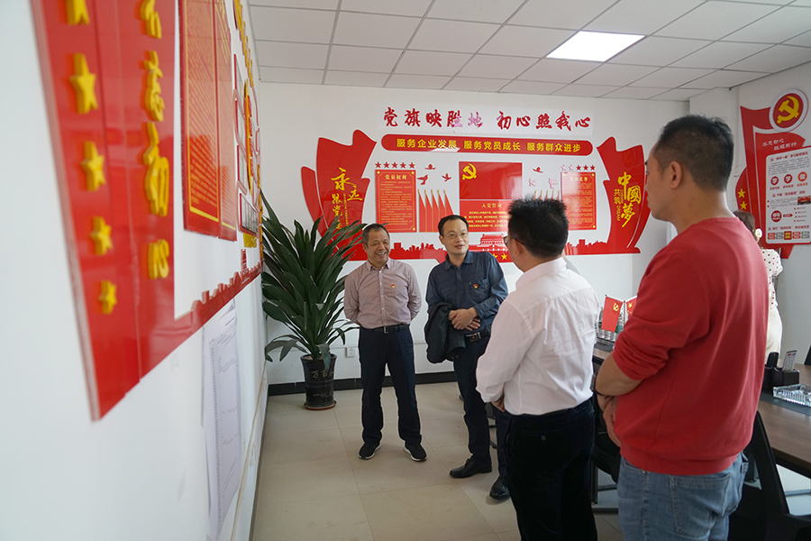 蔣玖明一行來到黨員活動室,察看了項目黨建制度、黨建活動、施工建設(shè)及安全防疫等方面資料上墻情況,了解了“11321工作法”實效,黨員在聯(lián)建黨組織的帶領(lǐng)下充分發(fā)揮示范帶頭作用、促進項目建設(shè)的情況。蔣玖明強調(diào),聯(lián)合黨支部要積極探索黨建項目化管理模式,建議新區(qū)在項目招投標中增加黨建分值一項,充分體現(xiàn)新區(qū)對黨建引領(lǐng)項目建設(shè)的關(guān)注,把黨支部擺在一線,讓黨員走在前列,有效促進黨建工作與建設(shè)工作的全面嵌入、同頻共振、相互促進。另一方面,我們要緊扣臨桂新區(qū)黨建品牌 “黨旗映勝地、初心照我心”這個主旨,深入挖掘那些能較好發(fā)揮“三個勇于”紅軍長征精神的基層黨員典型,凸顯黨員在項目一線、服務(wù)一線的先鋒模范作用,進一步弘揚主旋律、凝聚正能量,講好黨員的故事,營造品牌創(chuàng)建的濃厚氛圍。