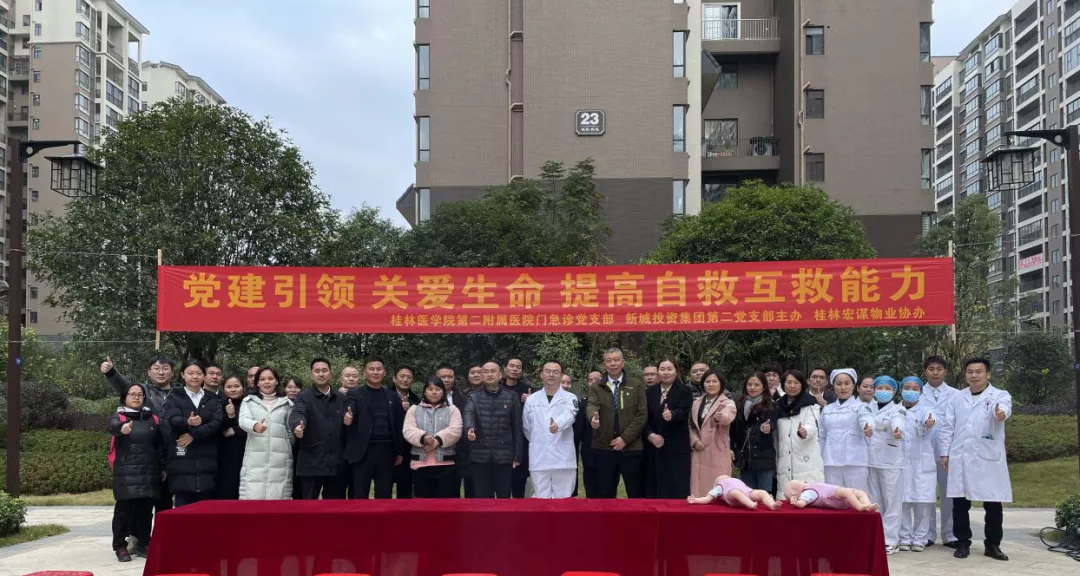 為全面貫徹中共桂林市委組織部關(guān)于深入推進(jìn)黨支部工作聯(lián)系點(diǎn)建設(shè)示范帶動(dòng)全市黨支部達(dá)標(biāo)創(chuàng)優(yōu)的通知,推進(jìn)黨支部工作聯(lián)系點(diǎn)建設(shè),在臨桂新區(qū)工委掛點(diǎn)領(lǐng)導(dǎo)文杰和新城投資集團(tuán)黨總支的指導(dǎo)下,新城投資集團(tuán)黨總支部下轄第二黨支部聯(lián)合桂林醫(yī)學(xué)院第二附屬醫(yī)院門(mén)急診黨支部,于2020年12月8日在臨桂區(qū)桂醫(yī)熙境小區(qū)開(kāi)展“黨建引領(lǐng),關(guān)愛(ài)生命、提高自救互救能力”主題黨日活動(dòng)。此次活動(dòng)分別組織了急救技能科普培訓(xùn)、為社區(qū)居民義診兩項(xiàng)內(nèi)容。