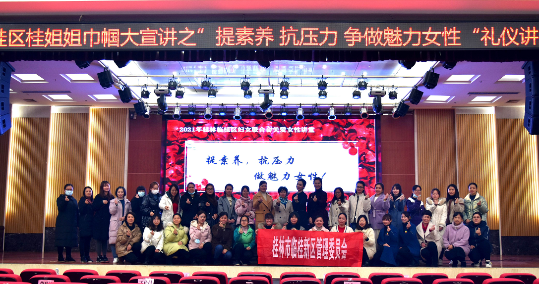 3月4日,公司女職工踴躍報名,與新區(qū)管委會女職工代表一起參加了臨桂區(qū)婦聯(lián)舉辦的“提素養(yǎng) 抗壓力 爭做魅力女性”禮儀講座。授課老師劉虹希女士通過講解和現(xiàn)場演示等方式,對接待禮儀、會議禮儀、服務(wù)禮儀及行車禮儀進行了現(xiàn)場演示。通過培訓(xùn),加深了女職工對儀態(tài)禮儀重要性認識,提升了女職工的抗壓能力和綜合素養(yǎng),展現(xiàn)了新區(qū)女職工積極向上的精神風(fēng)貌。