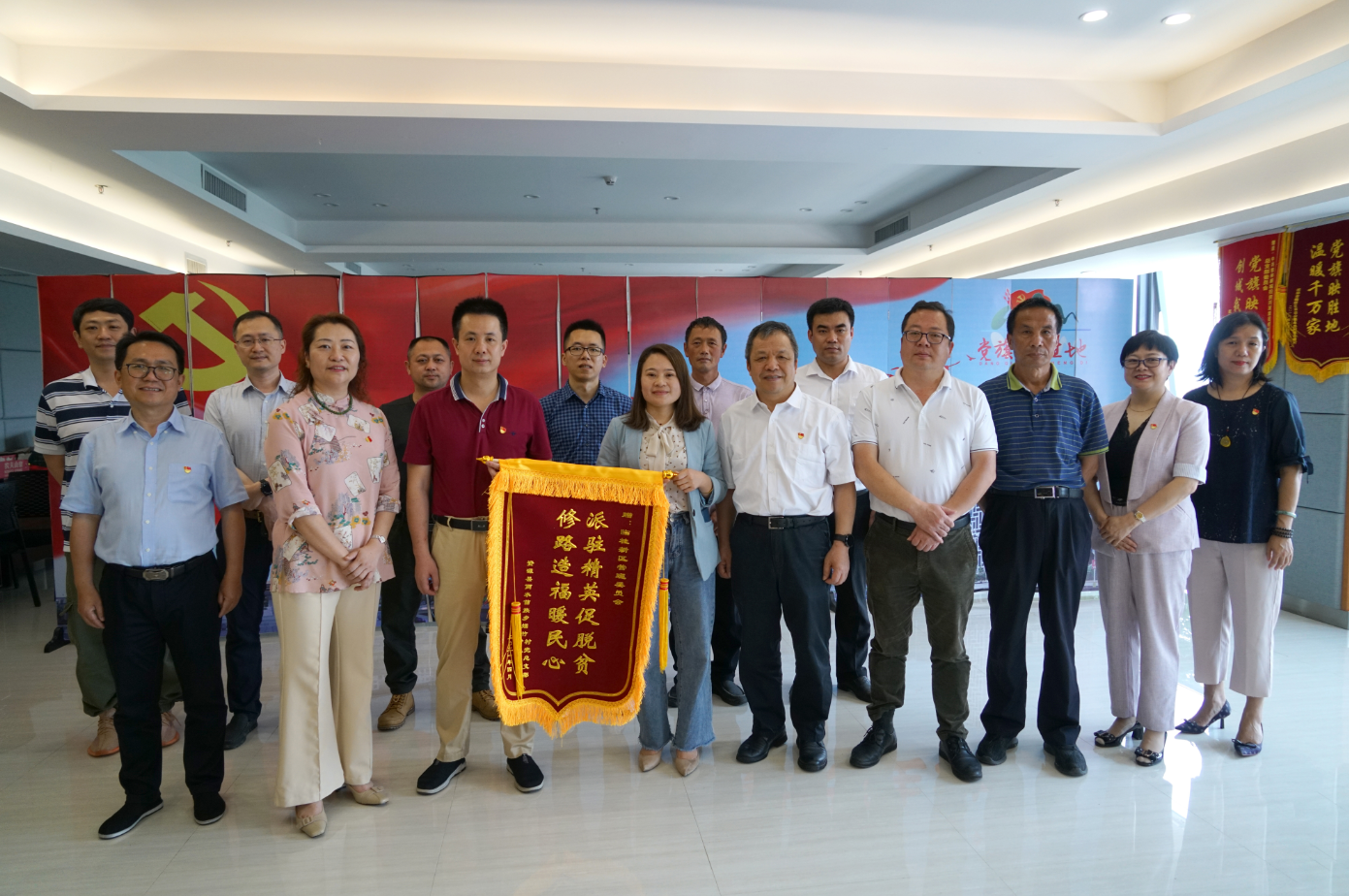 5月11日,資源縣兩水苗族鄉(xiāng)副鄉(xiāng)長曾祥超,煙竹村黨總支書記、村委主任龍小玉等一行將“修路造福暖民心,派駐精英促脫貧”的錦旗送到桂林新城投資集團(tuán)辦公大樓,對駐村隊員及后盾單位兩年來對煙竹村的幫扶工作表示感謝。臨桂新區(qū)工委委員、管委會副主任、新區(qū)機(jī)關(guān)黨委副書記文杰,新區(qū)工委組織人事部部長梁利,新城投資集團(tuán)黨總支書記、董事長、總經(jīng)理周道林出席贈錦旗活動。