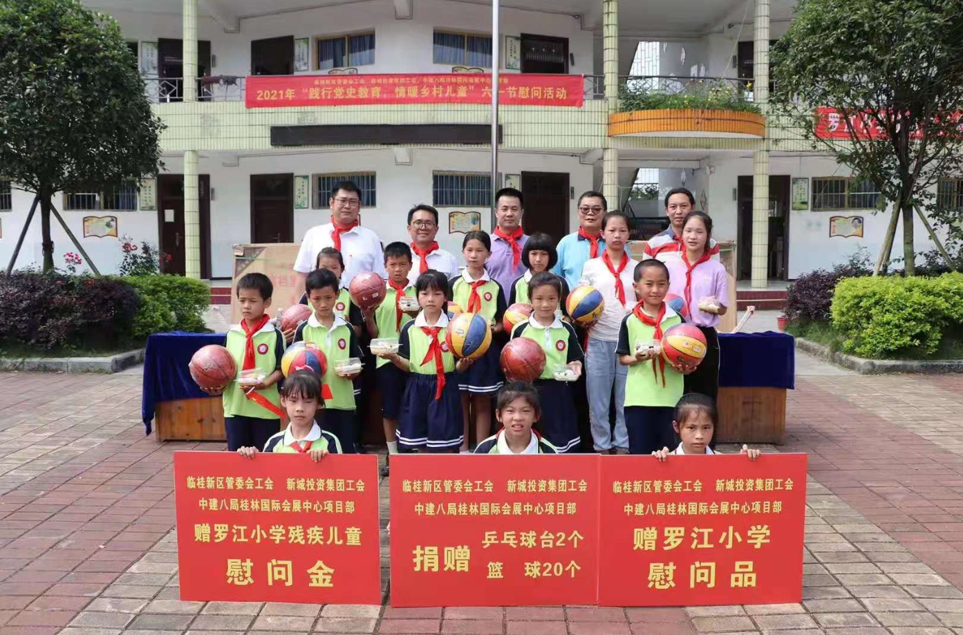 為認真貫徹落實黨史學習教育我為群眾辦實事要求,臨桂新區(qū)管委會工會、新城投資集團工會在臨桂區(qū)五通鎮(zhèn)羅江希望小學開展“踐行黨史教育,情暖鄉(xiāng)村兒童”六一節(jié)前夕慰問活動,并給孩子們帶來乒乓球臺、籃球、書包、文具、食品等物品,給小朋友們送上節(jié)日祝福。