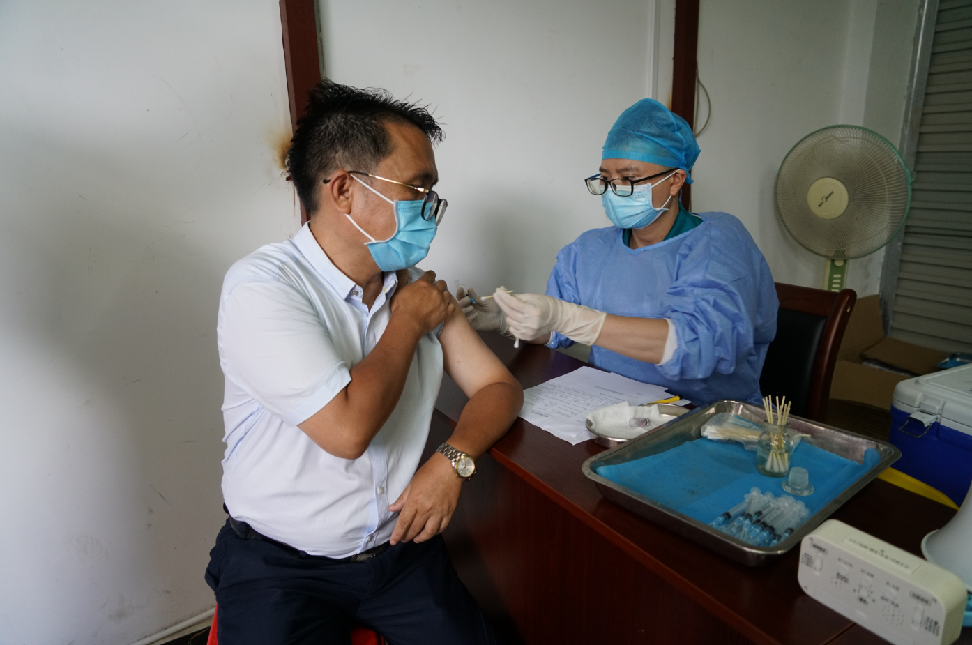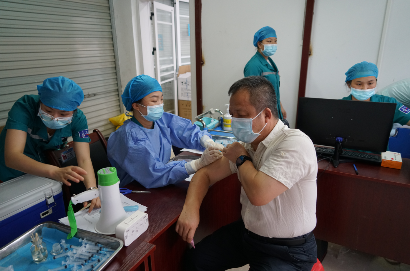 第二針接種流程與第一針相同,現(xiàn)場(chǎng)分為登記區(qū)、錄入?yún)^(qū)、接種區(qū)、留觀區(qū)和緊急處置區(qū)。集團(tuán)黨總支書記周道林,副總經(jīng)理吳濤,工會(huì)主席譚力源等到現(xiàn)場(chǎng)了解接種現(xiàn)場(chǎng)安排情況并帶頭接種新冠疫苗第二針。