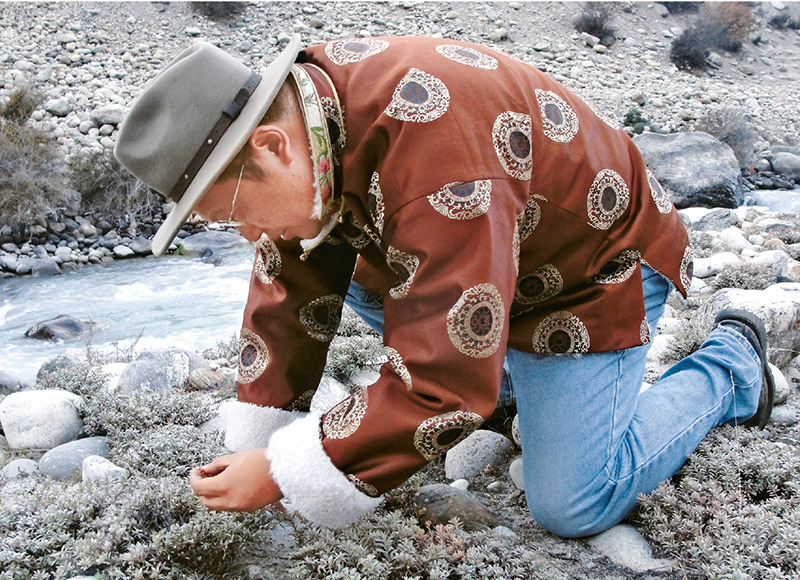 圖為鐘揚(yáng)教授在西藏戶外采集種子(資料圖片)。 新華社發(fā)