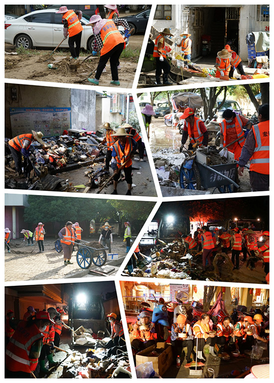 在龍船坪小區(qū)、安新小區(qū)、寧遠小學及周邊街道,一群身著橘紅色馬甲、印有“宏謀環(huán)衛(wèi)”的環(huán)衛(wèi)工人成為了救災現場的一道亮麗風景線。他們不畏艱難,深一腳淺一腳地踩在垃圾堆和泥漿中,一鍬一鍬地清理垃圾和淤泥?,F場工作人員齊心協力,面對困難毫不退縮,甚至唱起了《團結就是力量》來鼓舞士氣。經過晝夜奮戰(zhàn),他們終于將小區(qū)道路上的垃圾清運完畢,有效保障了道路的正常通行和居民的出行安全,及時防止災后疫情的發(fā)生。