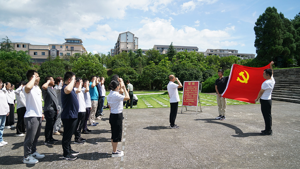 青山處處埋忠骨,何須馬革裹尸還。黨員們首先來到湘江戰(zhàn)役紀(jì)念碑前,向烈士紀(jì)念碑敬獻花籃并深深地三鞠躬,以表對革命烈士最崇高的敬意,黨員同志面向黨旗重溫入黨誓詞,追憶入黨初心。