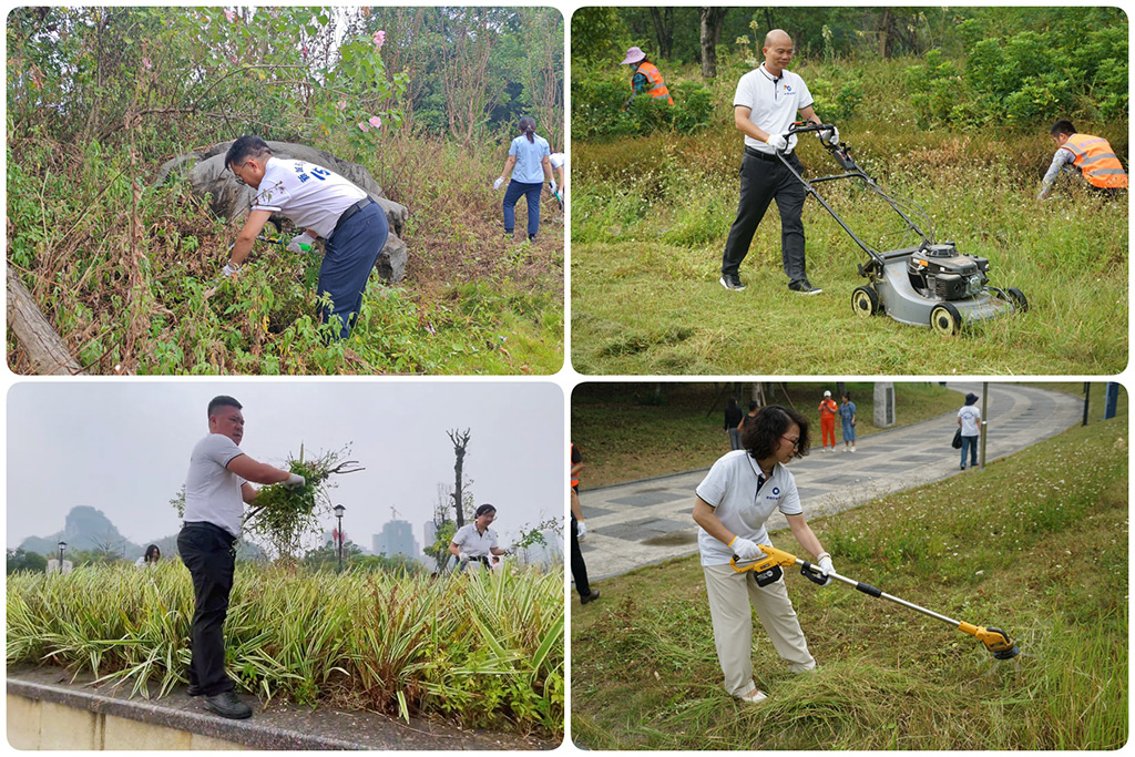 山水公園作為桂林新區(qū)的一張亮麗名片,承載著展現(xiàn)城市風(fēng)貌的重要使命。在國(guó)內(nèi)經(jīng)濟(jì)下行、財(cái)政支持相對(duì)不足的情況下,桂林新城投資開(kāi)發(fā)集團(tuán)有限公司(簡(jiǎn)稱(chēng)“新城投集團(tuán)”)勇挑重?fù)?dān),為政府承擔(dān)起公園日常維護(hù)之責(zé)。2024年10月14日新城投集團(tuán)立足自身實(shí)際,充分發(fā)揮黨組織戰(zhàn)斗堡壘作用和黨員先鋒模范作用,廣泛動(dòng)員黨員干部沖鋒在前,以實(shí)際行動(dòng)踐行初心使命,積極開(kāi)展“黨旗映勝地,清潔我先行,為山水公園洗臉”主題黨日活動(dòng),這一行動(dòng),既為了維護(hù)桂林的良好形象,又切實(shí)保障了市民的生活舒適度。集團(tuán)黨委副書(shū)記(主持工作)、副董事長(zhǎng)、總經(jīng)理朱毅攜公司領(lǐng)導(dǎo)班子成員黨委副書(shū)記兼紀(jì)委書(shū)記譚力源,黨委委員、董事、副總經(jīng)理葉青旺,黨委委員、董事、副總經(jīng)理何萌,董事、副總經(jīng)理劉敏,第一、第二、第三黨支部全體黨員(含預(yù)備黨員)、發(fā)展對(duì)象、入黨積極分子、遞交入黨申請(qǐng)書(shū)員工共100余名黨員干部參加活動(dòng)。