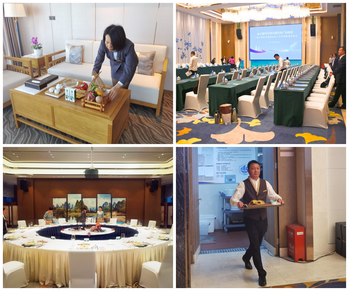 作為本次活動的定點接待酒店,宏謀大酒店精心規(guī)劃、優(yōu)化配置,力求在每一個細(xì)節(jié)上做到盡善盡美。酒店房務(wù)部在入住房間內(nèi)準(zhǔn)備了應(yīng)季水果、美味小食、營養(yǎng)牛奶及溫馨歡迎卡片,對每一間客房的床品、設(shè)施設(shè)備進(jìn)行細(xì)致檢查,確保嘉賓入住安全、舒適。大會期間,酒店全體員工齊心協(xié)力,順利完成宴會和會議場地的布置工作。餐飲部門更是精心設(shè)計宴會擺臺,從菜單構(gòu)思、食材采購到菜品烹制,每一個環(huán)節(jié)都嚴(yán)格把關(guān),全力保障與會嘉賓的用餐安全與品質(zhì)。在接待工作中表現(xiàn)優(yōu)異的酒店員工李軍表示:“我從新城投集團(tuán)本部行政辦公室調(diào)至宏謀大酒店后,迅速調(diào)整心態(tài),適應(yīng)角色轉(zhuǎn)變,積極融入到全新的工作環(huán)境中。我在完成酒店辦公室日常工作的同時,還經(jīng)常主動延長工作時間,積極參與酒店的重要會議和接待工作中。我作為一位共產(chǎn)黨員和退役軍人,更要在工作中沖鋒在前,充分發(fā)揮共產(chǎn)黨員的先鋒模范作用和軍人恪盡職守的優(yōu)秀品質(zhì),在不一樣的崗位上書寫一樣的人生華章。”