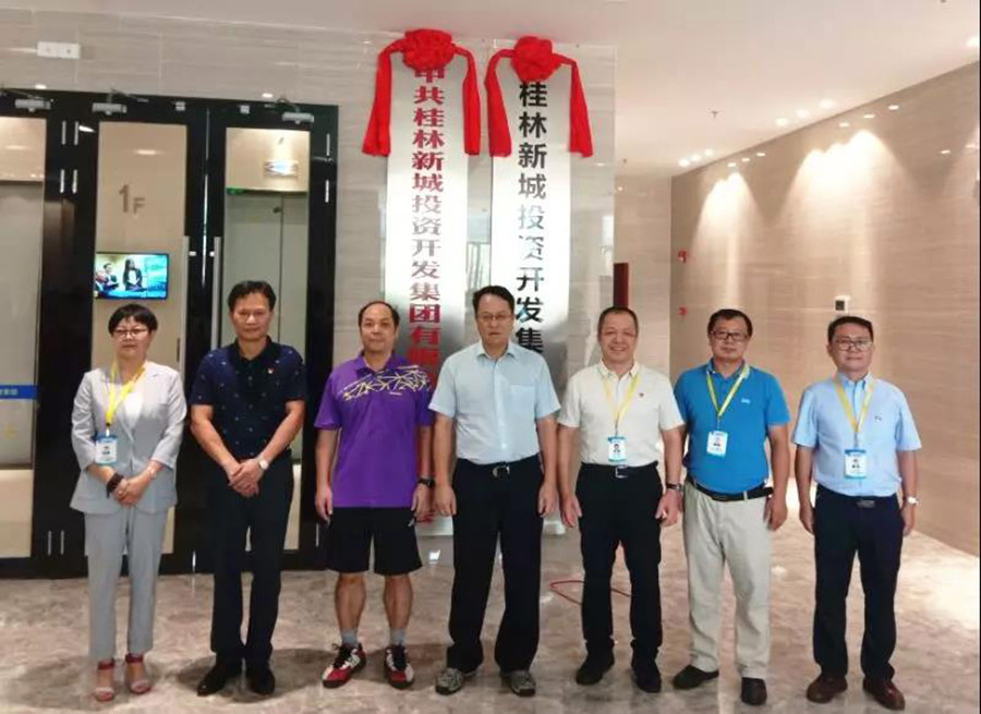 中共桂林市臨桂區(qū)委書記、中共桂林市臨桂新區(qū)工委第一副書記、桂林市臨桂新區(qū)管委會(huì)主任何新明,新區(qū)工委委員、管委會(huì)副主任覃正東,以及新城投資集團(tuán)領(lǐng)導(dǎo)班子共同為“中國共產(chǎn)黨桂林新城投資開發(fā)集團(tuán)有限公司支部委員會(huì)”、“桂林新城投資開發(fā)集團(tuán)有限公司”揭牌。