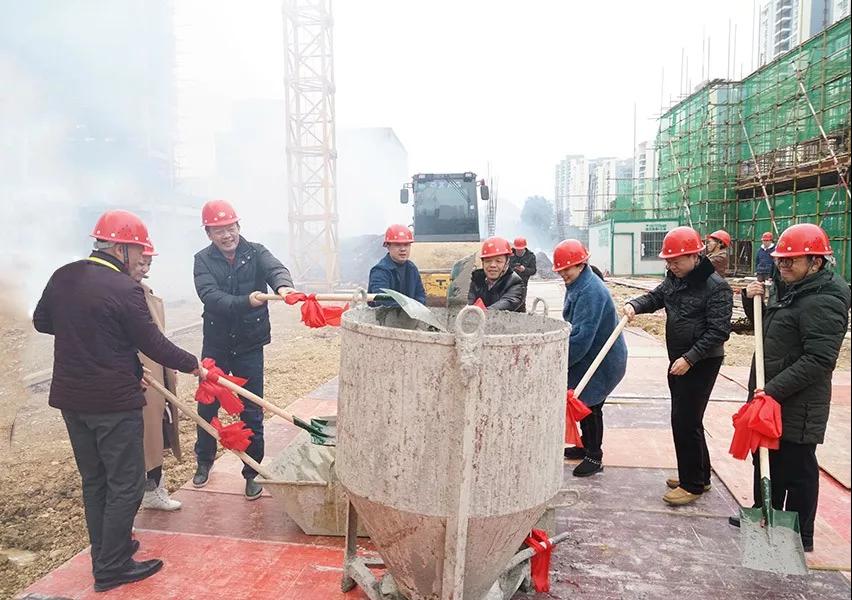 2019年1月21日桂林市臨桂新區(qū)管理委員會副主任文杰,新城投資集團總經(jīng)理周道林,副總經(jīng)理鄧仁友,工會主席譚力源,寶湖雙語教育有限公司董事長兼總經(jīng)理周靜,寶湖雙語教育有限公司董事莫俊,寶湖教育投資有限公司總經(jīng)理劉巡宇,副總經(jīng)理余佳等領(lǐng)導(dǎo)參加了新城寶湖書院4號樓封頂儀式。