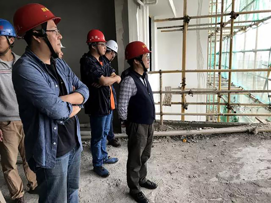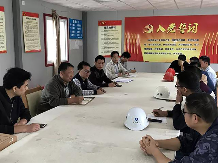 圖為譚力源組織項目管理人員和監(jiān)理、施工單位人員開展安全檢查
