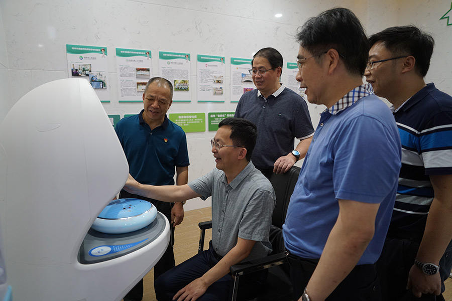 彭東光陪同呂洪安按照黨群服務(wù)中心的參觀路線,依次參觀了職工書吧、健康小屋、時(shí)光隧道、湘江戰(zhàn)役幻影成像、五大黨建版塊、十二縣區(qū)展區(qū)、臨桂新區(qū)展區(qū)、新城投資集團(tuán)展區(qū)、人才家園區(qū)及會(huì)議室。呂洪安體驗(yàn)了“零距離”便民服務(wù)的智能健康體檢設(shè)備,連連稱贊,要求紀(jì)檢監(jiān)察綜合業(yè)務(wù)基地也要考慮同樣的服務(wù)設(shè)施。建議在場(chǎng)地允許和時(shí)機(jī)成熟時(shí),在中心二樓打造清廉榜樣展廳,突出黨員榜樣的力量。