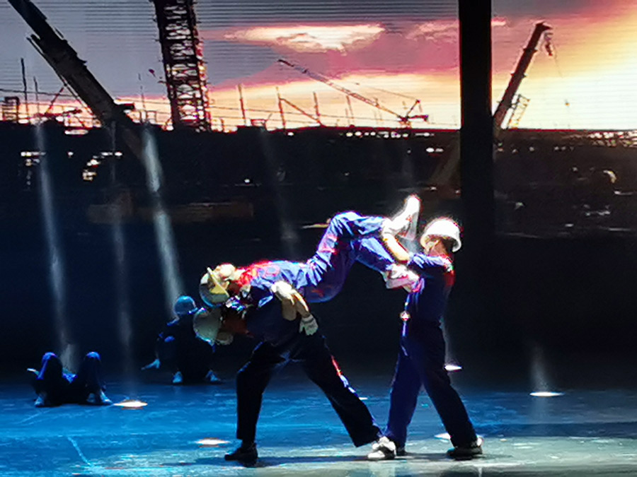 本次參演的演員們來(lái)自集團(tuán)公司及各個(gè)子公司,有動(dòng)作不協(xié)調(diào)的工程技術(shù)理工男,有只擅埋頭碼字的行政文員,有物業(yè)安保小哥,有房產(chǎn)銷售精英等等,在這個(gè)節(jié)目里,他們都是新區(qū)建設(shè)者的代表和縮影。沒(méi)有舞臺(tái)經(jīng)驗(yàn)的他們,靠著一遍遍的艱苦練習(xí),一個(gè)月下來(lái),每個(gè)人的膝蓋都是烏青發(fā)紫,終于將動(dòng)作做到了整齊劃一。演員吳春妍同志剛休完產(chǎn)假,家里孩子還在哺乳中,為了支持她的排練演出,孩子爸爸常常幫把孩子送到在排練中的媽媽手上,以節(jié)約她回家的時(shí)間。許多演員為了排練,推掉了孩子暑假的活動(dòng)安排,犧牲了假期。一些演員是白班夜班輪班制的,為了參加統(tǒng)一排練,調(diào)班連續(xù)工作。