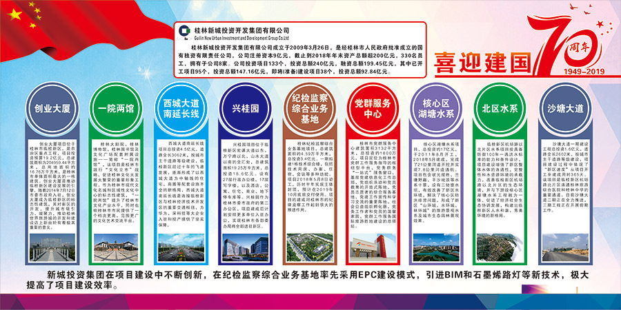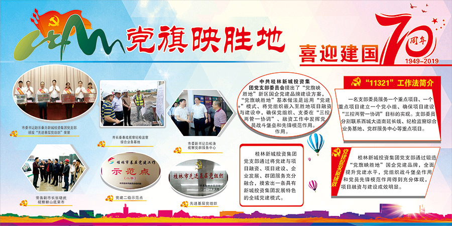 新城投資集團黨總支精心組織選送慶祝中華人民共和國成立70周年國資國企改革發(fā)展成就展板報比賽參賽作品。展板作品充分展現(xiàn)了新城投資集團黨總支在“黨旗映勝地”黨建品牌打造過程中,不忘初心,牢記使命,鍛造“真抓實干強擔(dān)當(dāng),全力以赴推項目”的項目建設(shè)精神;集團黨總支充分運用“全域黨建管控新模式”,創(chuàng)立“11321”工作法解決工地實際難題;在紀檢監(jiān)察綜合業(yè)務(wù)基地率先采用EPC建設(shè)模式,引進BIM和石墨烯路燈等新技術(shù),極大提高了項目建設(shè)效率,譜寫了“新區(qū)騰飛,黨建新篇”。