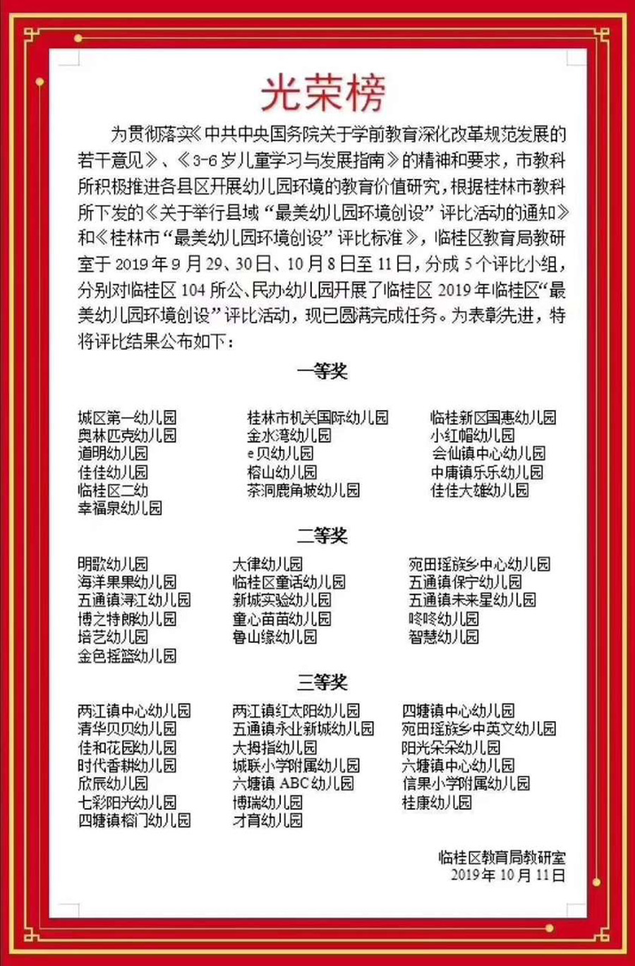 近日,臨桂區(qū)教育局教研室積極推進(jìn)開(kāi)展幼兒園環(huán)境的教育價(jià)值研究,舉辦了 “最美幼兒園環(huán)境創(chuàng)設(shè)”評(píng)比活動(dòng)。國(guó)惠幼兒園在評(píng)比中榮獲2019年臨桂區(qū)“最美幼兒園環(huán)境創(chuàng)設(shè)”一等獎(jiǎng)。