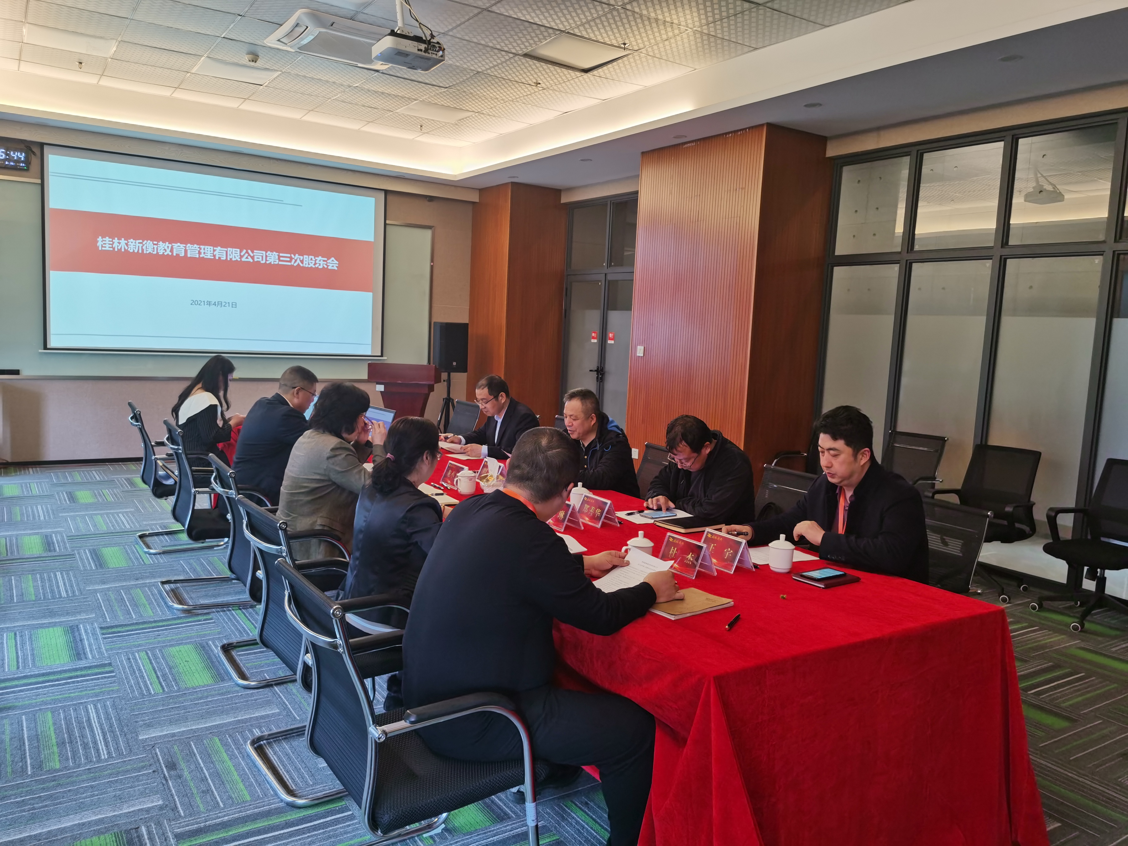 2021年4月21日下午,桂林新衡教育管理有限公司2021第二次股東會在公司三樓會議室召開,桂林新城投資開發(fā)集團有限公司董事長周道林、廣西新衡教育管理有限公司董事長龍小芳分別代表桂林新衡教育管理有限公司雙方股東參會。