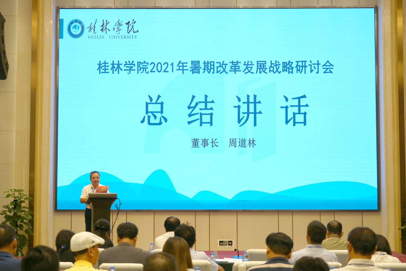 2021年8月26日至27日,桂林學(xué)院2021年暑期改革發(fā)展戰(zhàn)略研討會(huì)在宏謀大酒店召開(kāi)。新城投資集團(tuán)黨總支書(shū)記、董事長(zhǎng)、總經(jīng)理、桂林學(xué)院董事長(zhǎng)周道林?jǐn)y舉辦方領(lǐng)導(dǎo)班子成員參加研討會(huì)。