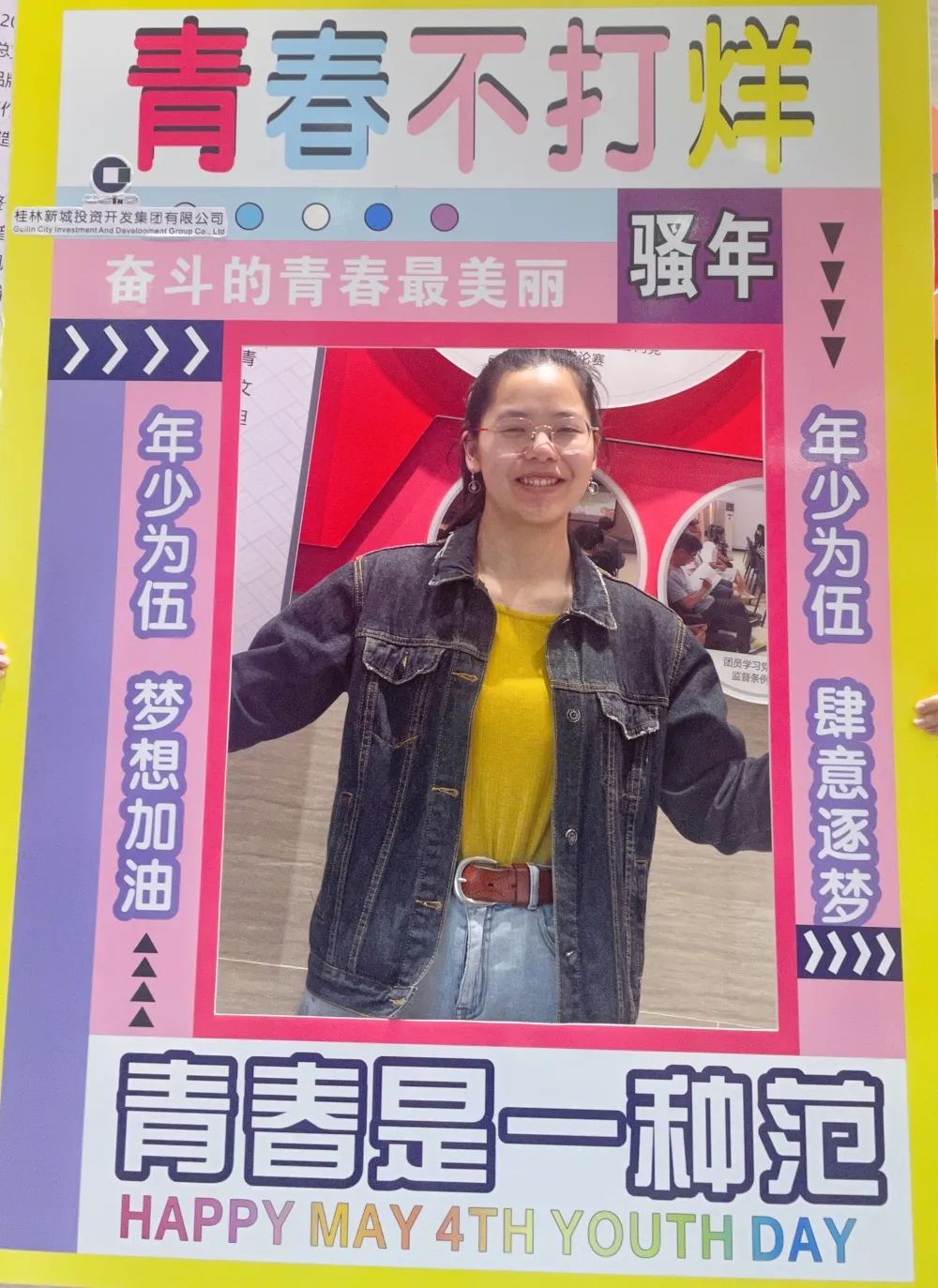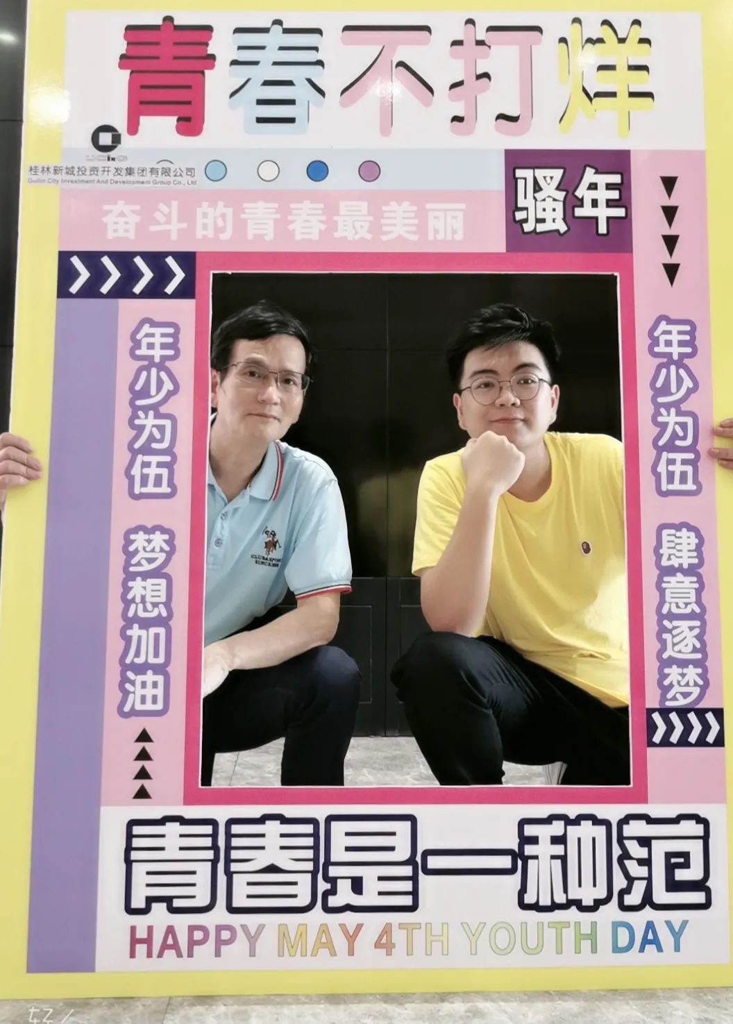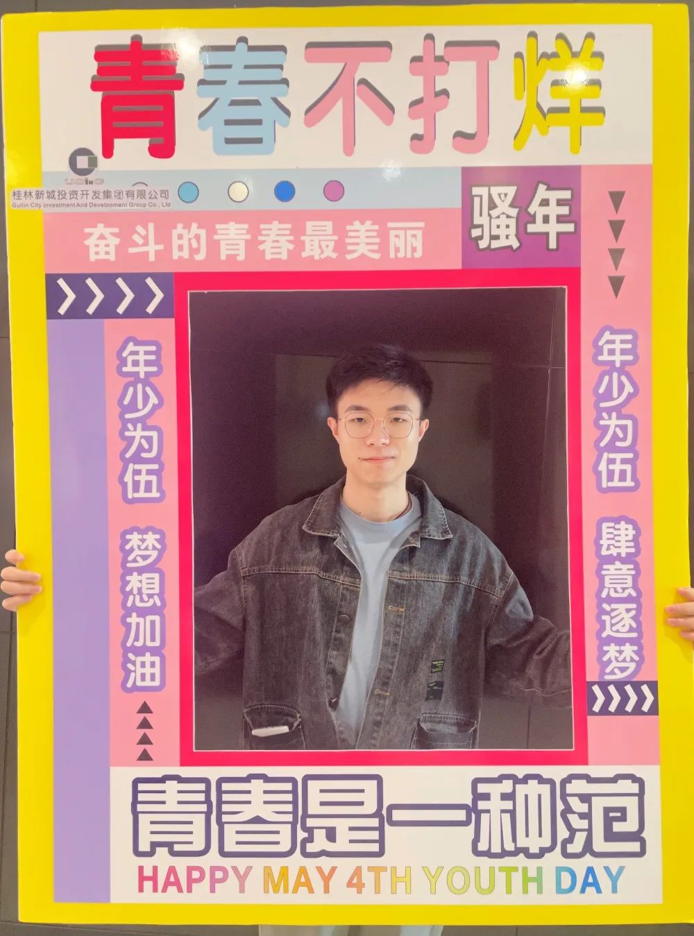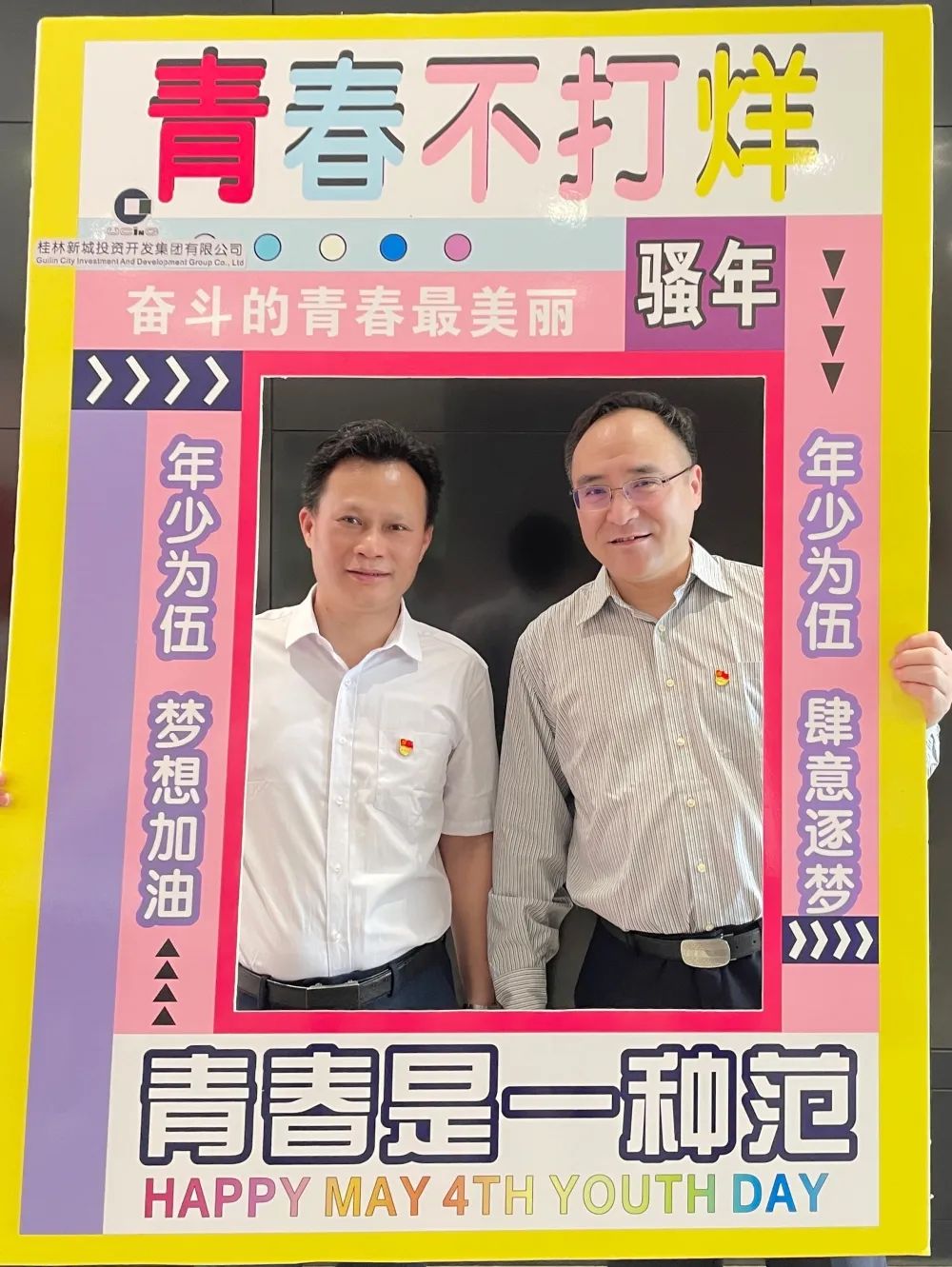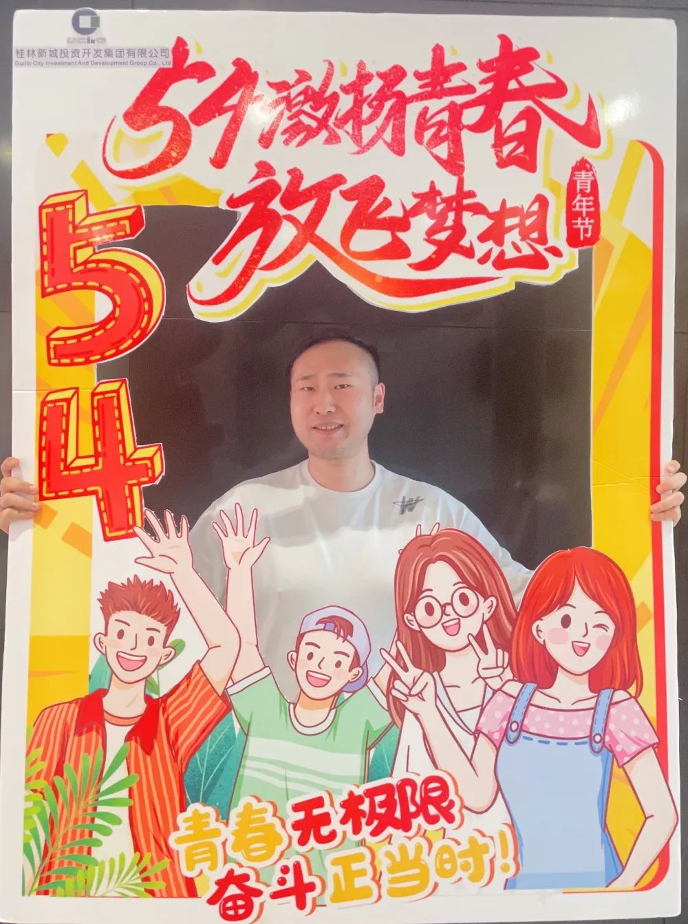 公司一樓大廳,團(tuán)支部布置了“五四主題”畫框打卡活動(dòng),熱烈慶祝五四青年節(jié)到來。周道林帶頭打卡,并鼓勵(lì)全體員工積極參與拍照打卡活動(dòng),渲染喜慶的節(jié)日氛圍。