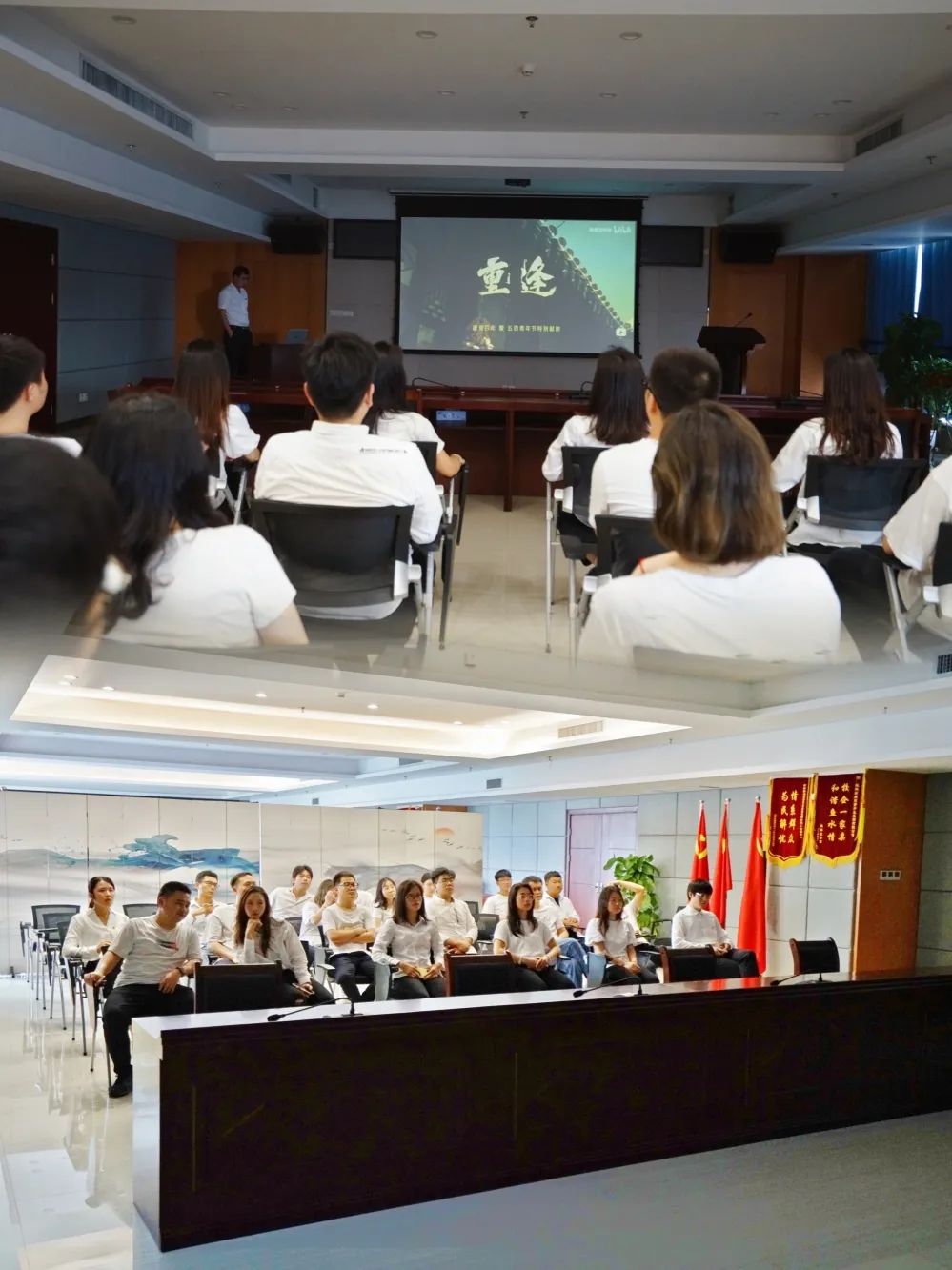 打卡活動(dòng)結(jié)束后,全體團(tuán)員在十樓會議室集體觀看了《重逢》,影片描述了青年一代不怕苦、不畏難、不懼犧牲,用肩膀扛起如山的責(zé)任,展現(xiàn)了青春激揚(yáng)的風(fēng)采。團(tuán)員們紛紛表示要傳承“五四運(yùn)動(dòng)”的光榮歷史傳統(tǒng),自覺踐行“強(qiáng)國有我,請黨放心”的青春誓言,勇?lián)鷷r(shí)代的重任,奮力投身桂林新區(qū)的建設(shè)工作中,在火熱實(shí)踐中凝聚強(qiáng)大青春力量。