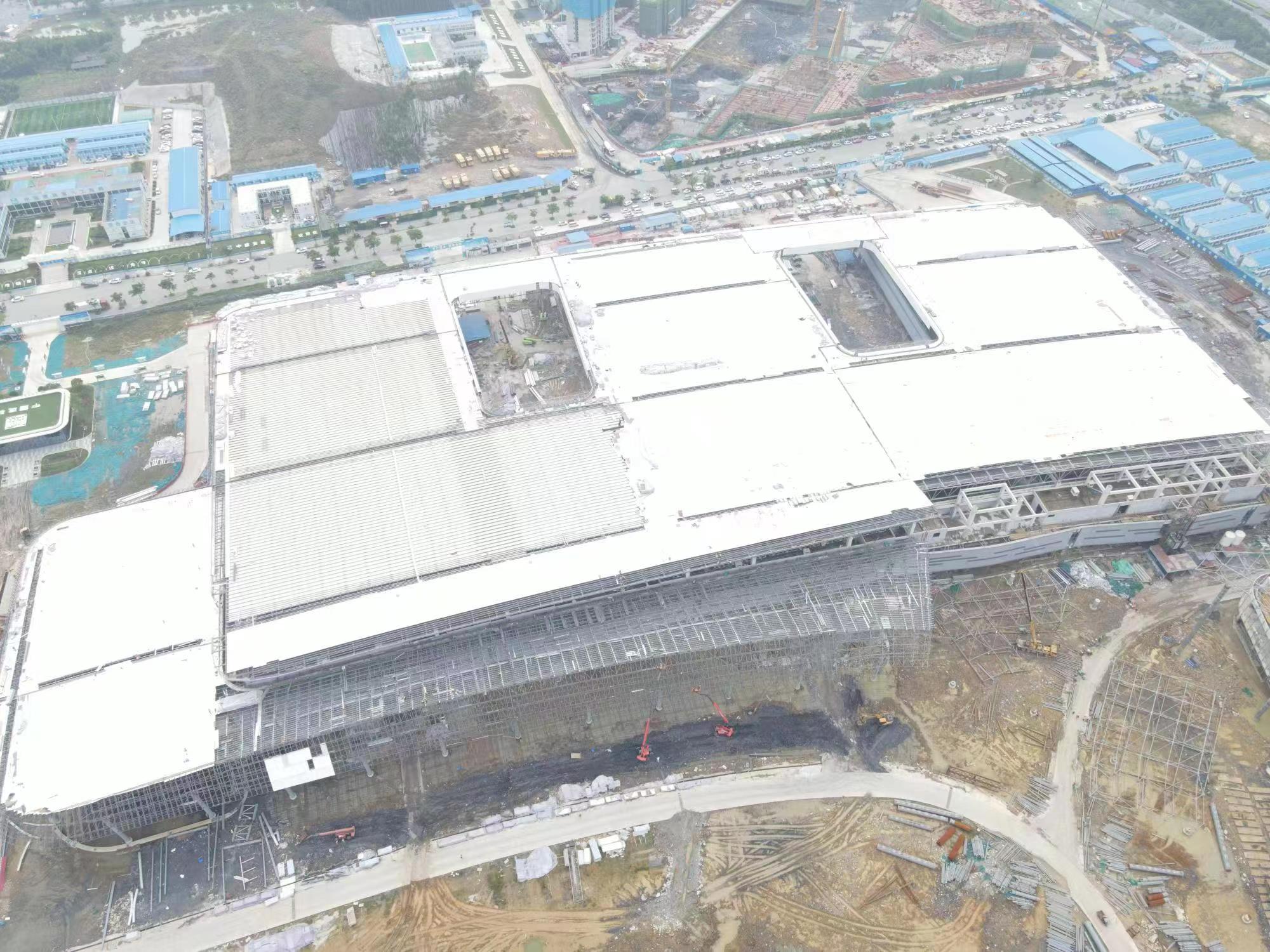 新城投集團(tuán)在桂林新區(qū)“黨旗映勝地”黨建品牌的引領(lǐng)下,成立了項目臨時聯(lián)合黨支部,通過抓實“11321”黨建推項目工作法,實施“全過程一體鏈”黨建新模式,充分發(fā)揮各參建單位所長,以黨建推項目、項目促黨建,積極推進(jìn)黨建工作與生產(chǎn)經(jīng)營的深度融合,齊心協(xié)力推動會展項目建設(shè)。現(xiàn)在,會展中心項目現(xiàn)場每天施工人數(shù)超1800人,各專業(yè)工作正在有序穿插進(jìn)行,在保證安全和工程質(zhì)量的前提下進(jìn)行施工,一季度月均產(chǎn)值過億。項目建設(shè)參建各方堅持安全第一、質(zhì)量至上,全程監(jiān)督每一道施工工序,嚴(yán)格把關(guān)每一個施工細(xì)節(jié), 各區(qū)域施工作業(yè)高效、有序展開,確保了疫情防控不缺位,項目施工整體不掉速。截至“5.1”前,項目標(biāo)準(zhǔn)展廳二次結(jié)構(gòu)完成80%,幕墻完成80%,金屬屋面避水工作正在展開;多功能廳主體完成100%;會議中心地下室完成90%,鋼柱吊裝完成80%;第一接待中心主樓完成至10樓,附樓地下室完成100%;游客中心地下室完成100%。