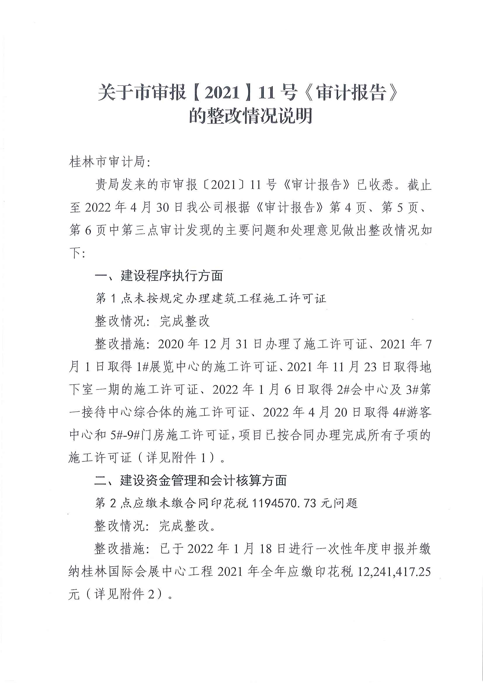 關(guān)于市審報(bào)【2021】11號(hào)《審計(jì)報(bào)告》的整改情況說明