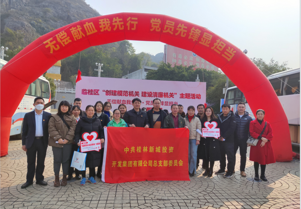 2023年2月28日,臨桂區(qū)直機關(guān)工委、臨桂區(qū)衛(wèi)健工委在桂林金山廣場開展“無償獻血我先行 黨員先鋒顯擔當”主題活動,新城投集團黨總支雖然已劃轉(zhuǎn)至桂林城鄉(xiāng)建設(shè)控股集團有限公司,但是集團黨總支始終把講政治講大局放在第一位,在接到通知后,根據(jù)屬地原則立即進行了動員部署,黨員干部職工紛紛響應(yīng)號召,組建了一支30余人的獻血隊伍,是獻血人數(shù)最多的單位之一,得到了主辦單位的肯定與好評。