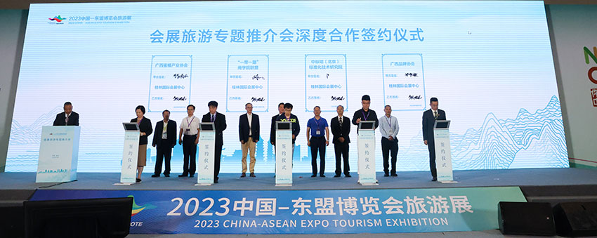 10月15日上午,由中國(guó)-東盟博覽會(huì)旅游展秘書處、首都會(huì)展集團(tuán)主辦,桂林市博覽事務(wù)發(fā)展中心、桂林城鄉(xiāng)建設(shè)控股集團(tuán)有限公司、桂林新城投資開發(fā)集團(tuán)有限公司、桂林宏謀國(guó)際會(huì)展服務(wù)有限公司、桂林米青傳媒科技有限公司聯(lián)合承辦的“2023中國(guó)-東盟博覽會(huì)旅游展會(huì)展旅游專題推介會(huì)”在桂林新國(guó)際會(huì)展中心4號(hào)展廳成功舉行。推介會(huì)當(dāng)天吸引了來自全國(guó)不同地區(qū)的學(xué)會(huì)、協(xié)會(huì)、會(huì)展相關(guān)企業(yè)等140余人參會(huì)。