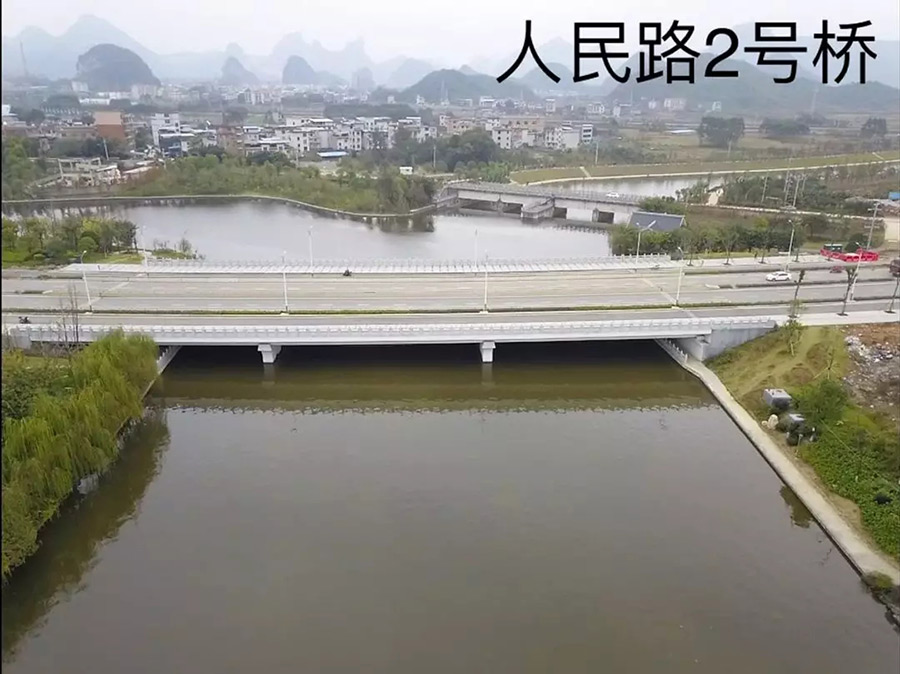 人民路二號(hào)橋位于臨桂新區(qū)人民路(萬(wàn)福路-臨雁路段)上,是臨桂區(qū)通往秧塘工業(yè)園區(qū)的重要通道,橋梁結(jié)構(gòu)采用32米+32米+32米三跨等截面連續(xù)結(jié)構(gòu),跨越臨桂新區(qū)規(guī)劃水系,橋梁中心線與河道正交,橋梁長(zhǎng)度為102.2米、寬度為40米,該工程于2017年5月開(kāi)工建設(shè),于2018年6月21日完成初步驗(yàn)收。