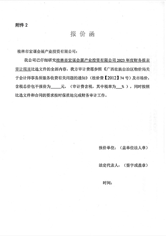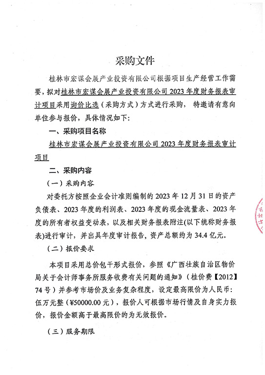 桂林市宏謀會展產(chǎn)業(yè)投資有限公司?2023年度財務報表審計項目采購文件