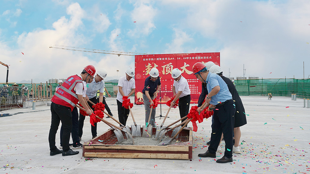 黨旗映勝地 建設(shè)我先行——桂林學(xué)院二期建設(shè)項(xiàng)目4#、5#、6#學(xué)生宿舍樓順利封頂,共慶國(guó)慶佳節(jié)!