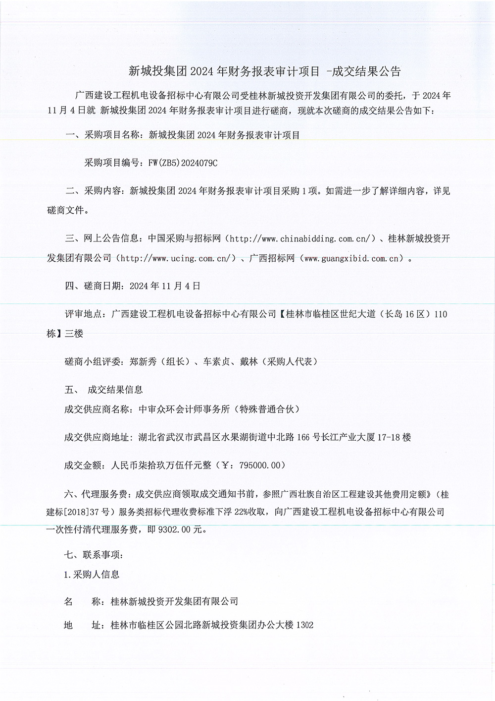 新城投集團2024年財務報表審計項目【FW(ZB5)2024079C】成交結果公告