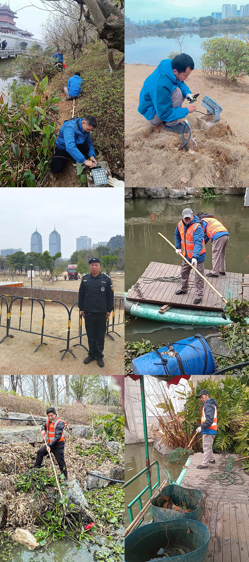 黨員同志帶頭成立工作小組,對(duì)山水公園的環(huán)境衛(wèi)生、園林綠化、水系水域、電力系統(tǒng)、照明設(shè)施等關(guān)鍵領(lǐng)域進(jìn)行全面、細(xì)致的檢查與維護(hù)工作,同時(shí),加強(qiáng)山水公園安保力量,加大煙花燃放點(diǎn)的巡查力度,安排專人對(duì)煙花組裝區(qū)域?qū)嵤﹪?yán)密守護(hù),并全力配合三大通信運(yùn)營商及其他相關(guān)部門做好用電取電工作,有效保障了活動(dòng)的順利進(jìn)行,確?;顒?dòng)當(dāng)日向市民呈現(xiàn)一個(gè)安全、舒適的活動(dòng)環(huán)境。