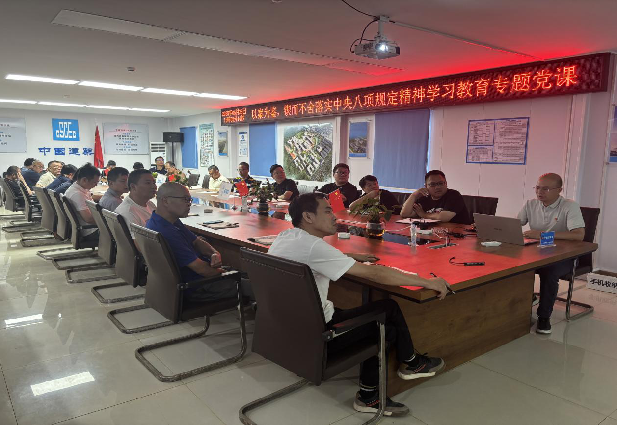 會議尾聲,葉青旺以《以案為鑒,鍥而不舍落實中央八項規(guī)定精神》為題講授專題黨課。課程通過剖析近期違反中央八項規(guī)定精神的典型案例,深刻揭示違規(guī)違紀(jì)行為的思想根源,警示全體黨員要以案為鑒、防微杜漸。黨課強調(diào),重大項目更要嚴(yán)守廉潔底線,將中央八項規(guī)定精神在項目上落地生根。