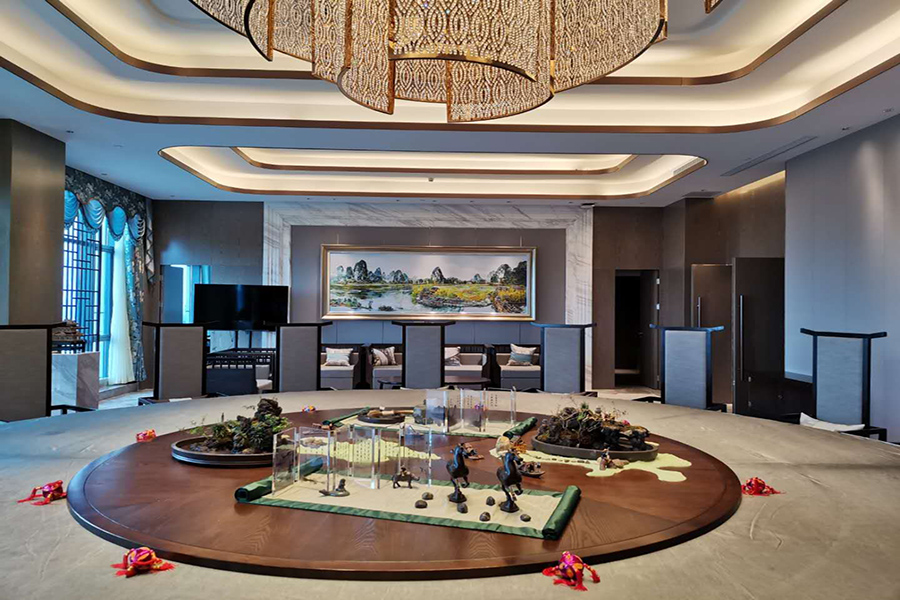 酒店以桂林山水藝術(shù)為主題,一千多幅著名畫家的珍品真跡展示,以桂林傳統(tǒng)的山水歷史為題材,讓客人移步換景,仿若身居山水藝術(shù)長廊,在酒店內(nèi)就能感受到桂林山水之美。